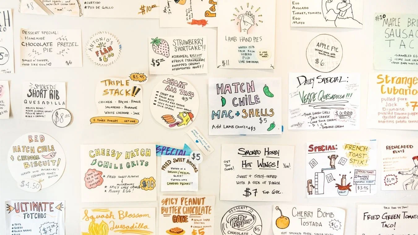 Bryan Lee Weaver’s team at Redheaded Stranger takes having fun very seriously. The American Southwest-inspired taco joint has a menu of staples like the green chile cheeseburger and chopped brisket taco with Dr. Pepper hot sauce. But it’s their daily specials, hand-drawn by front of house staff and forever memorialized on their “special wall,” that keeps guests on their toes. And while this program is a playful way for staff to get creative, it also brings in regulars and newcomers alike when they see one of their favorite specials on the restaurant’s Instagram. Proven successful specials like the Smoked Brisket Burger, portrayed by a lone bull donning a fur-lined leather coat longingly dragging a joint, will come off the wall to advertise its revival. “Any time guests see it, we’ll have a busier day,” says Weaver. “Sometimes when I post specials, there's a rush of our regular guests that are like, ‘Oh man, I can't wait to have that one again.’”