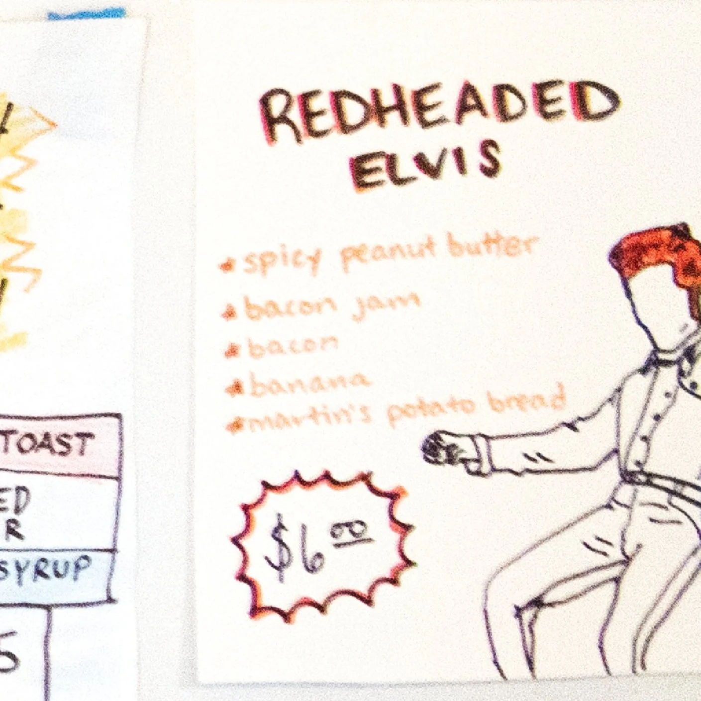 If life gives you peanuts, make peanut butter! A shipment of way too many peanuts and a broken blender during banana milkshake season led the Redheaded Stranger team to Elvis’s classic sandwich, with hot-sauce-spiked African runner peanut butter, bananas, bacon, and bacon jam.
