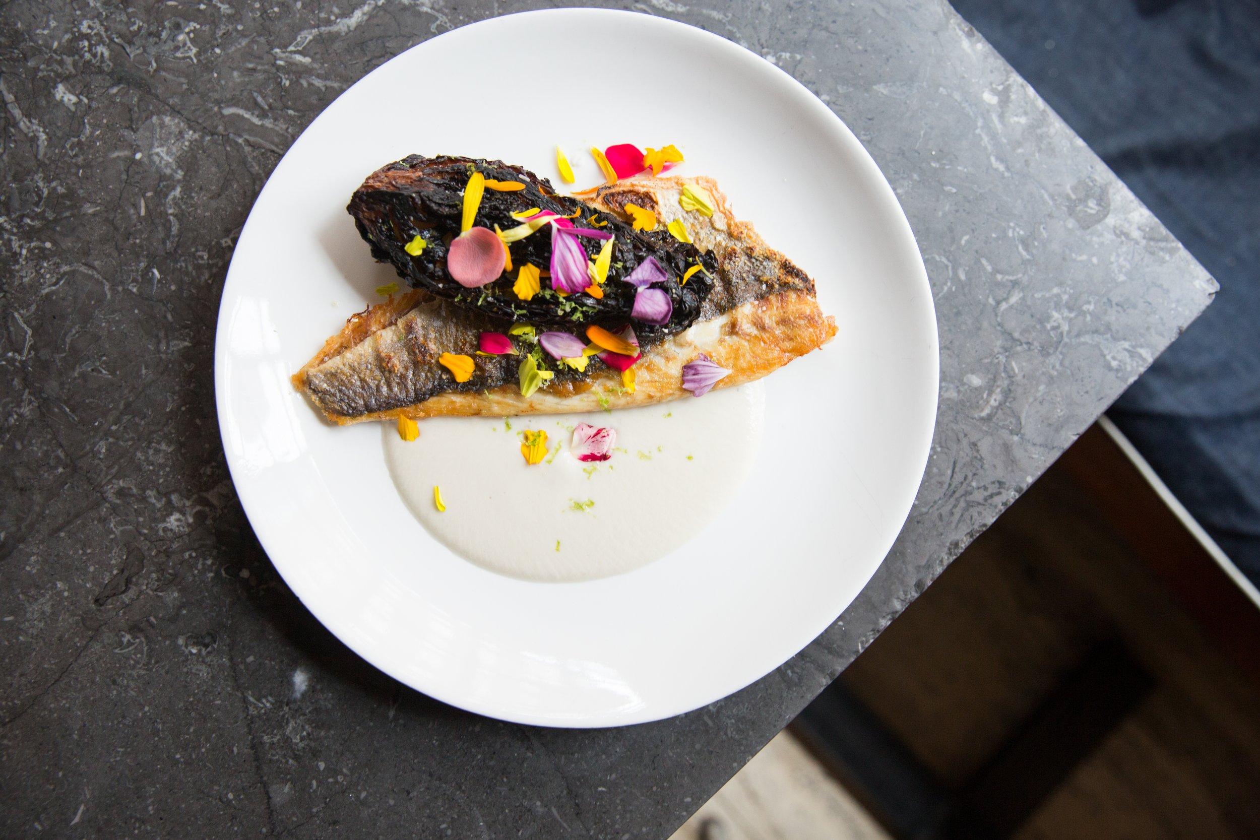 Bronzino, Charred Cabbage, Ginger, Beurre Blanc, and Lime