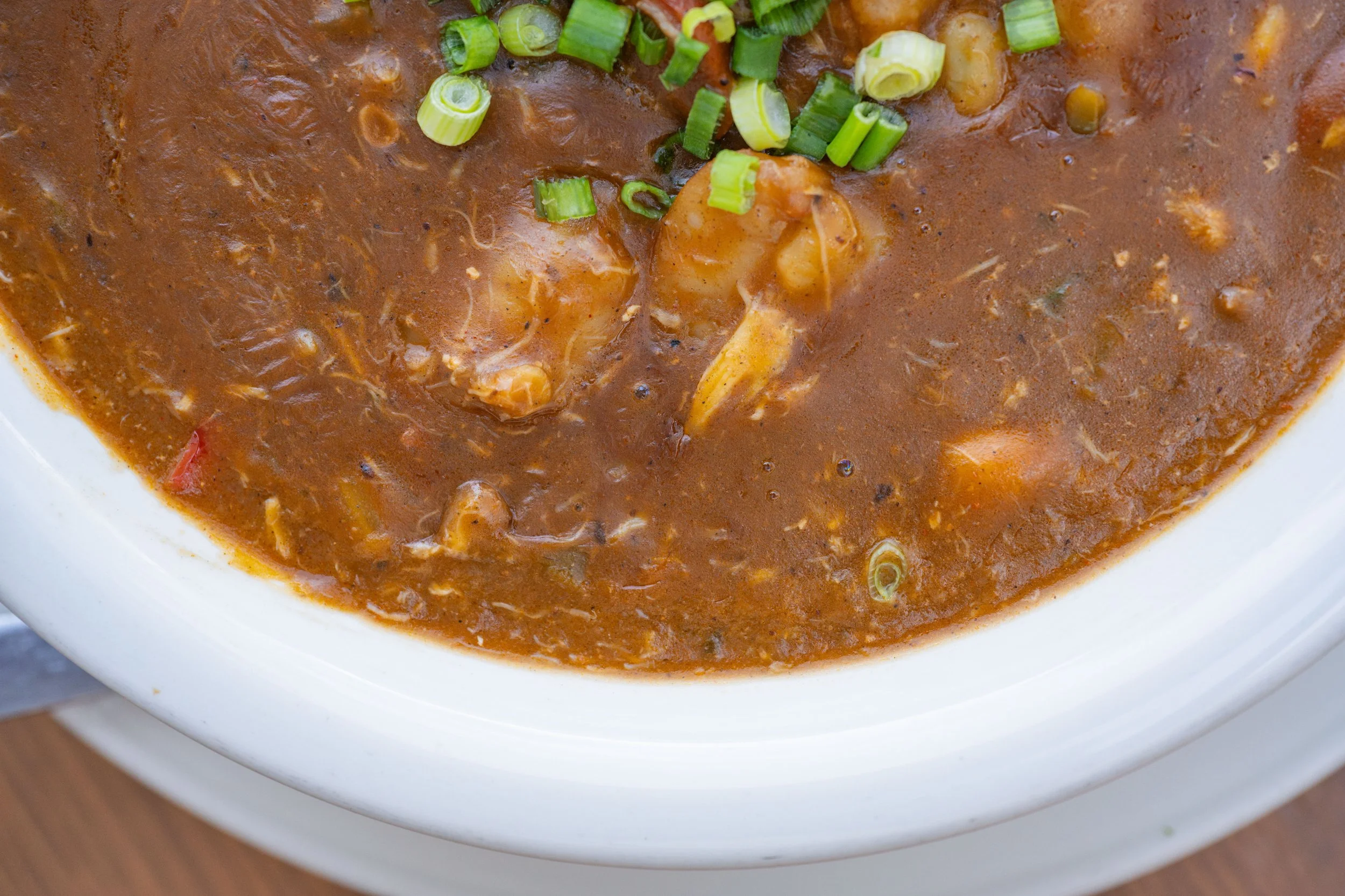 House Gumbo: Shrimp, Crab, Lobster, Sausage, Okra, Chocolate Roux, Clam Juice