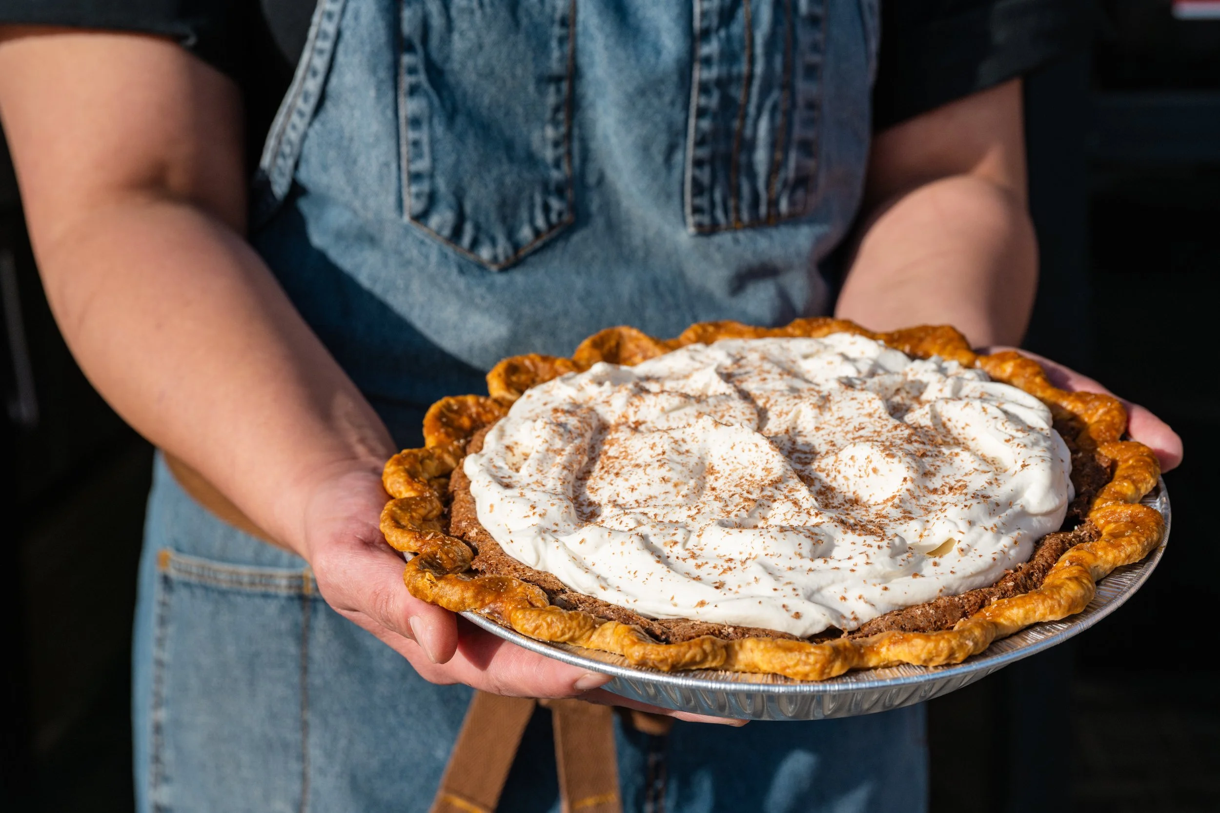 Chocolate Chess Pie: Chocolate Filling, Whipped Cream, Butter Crust