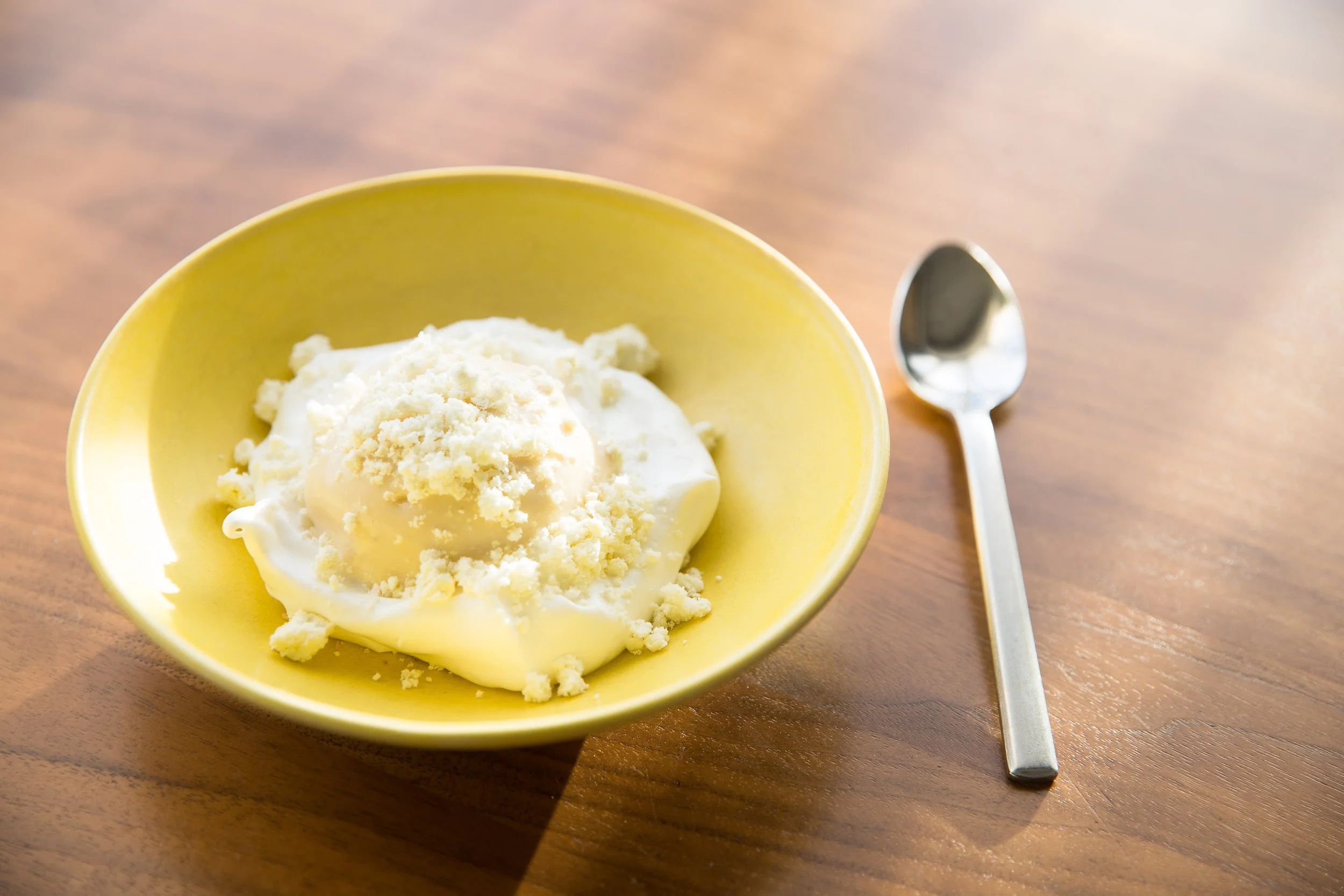 Earl Grey Sherbet, Whey Whip, Lemon Oil Powder, Buckwheat Crumble, Buckwheat Groats, Parsnip Pudding