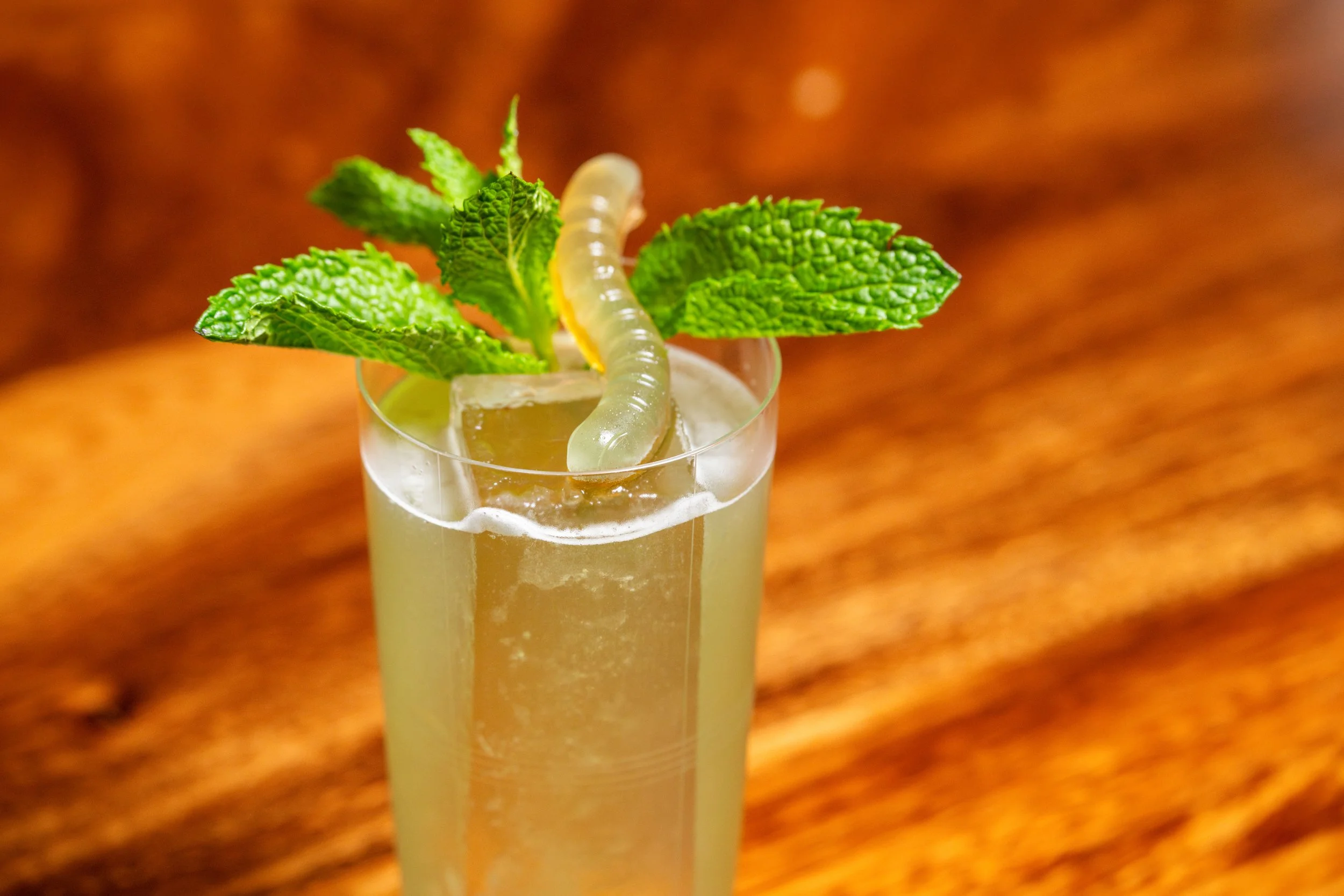 Return of the Yak: Caramelized Banana and Pineapple-Infused Cognac, Hypnotiq, Soda Water, Incredible Hulk Gummy Worms