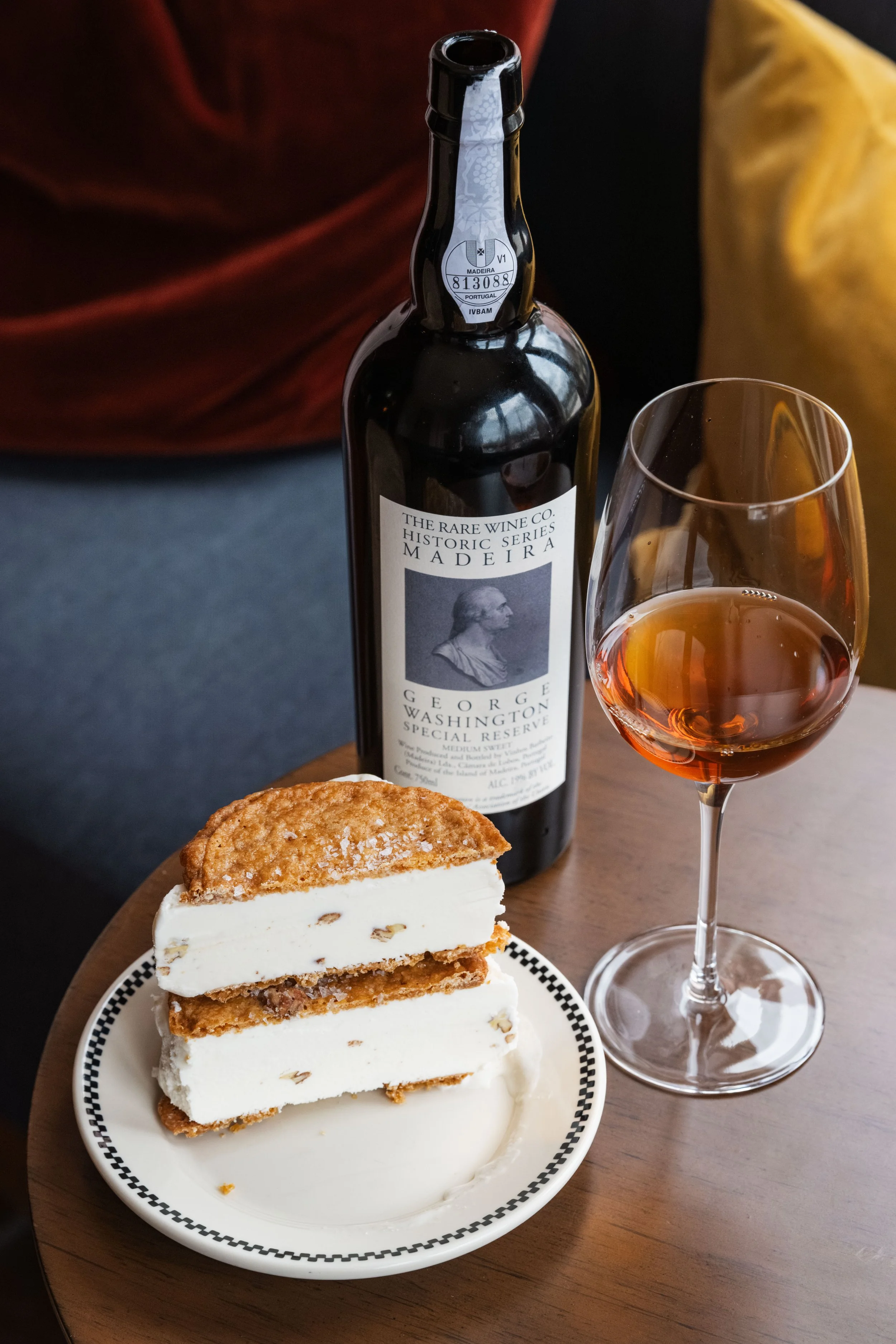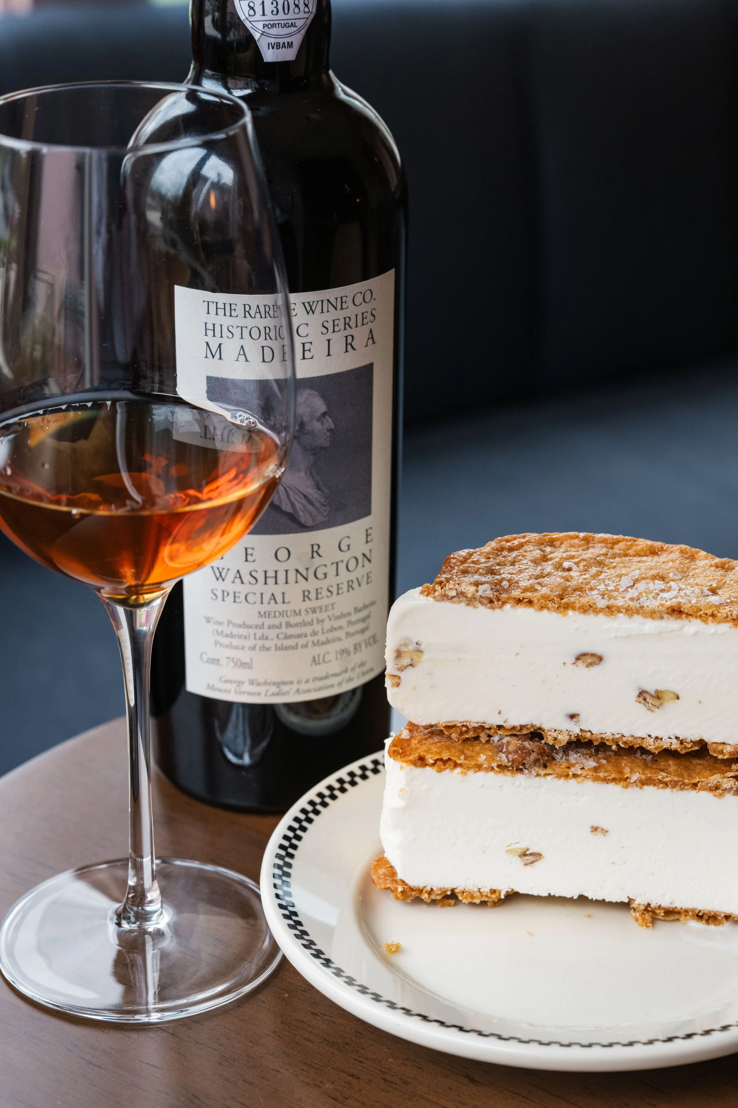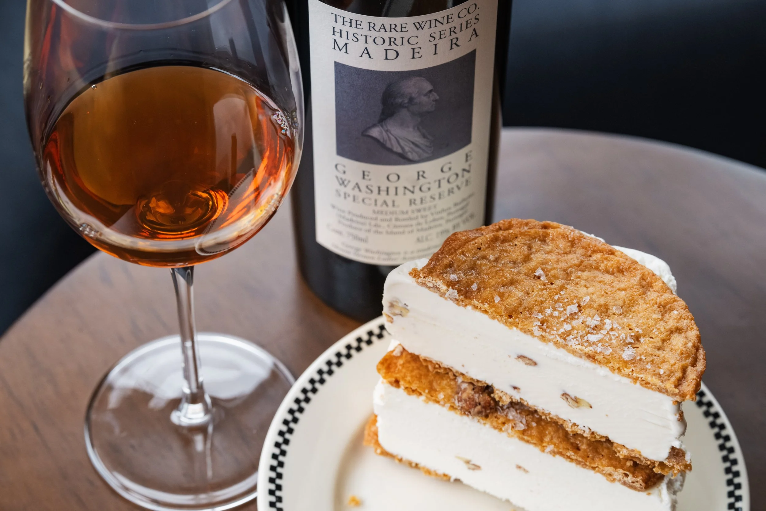 Praline Ice Cream Sandwich paired with Madeira, The Rare Wine Co., Historic Series George Washington Special Reserve, Portugal