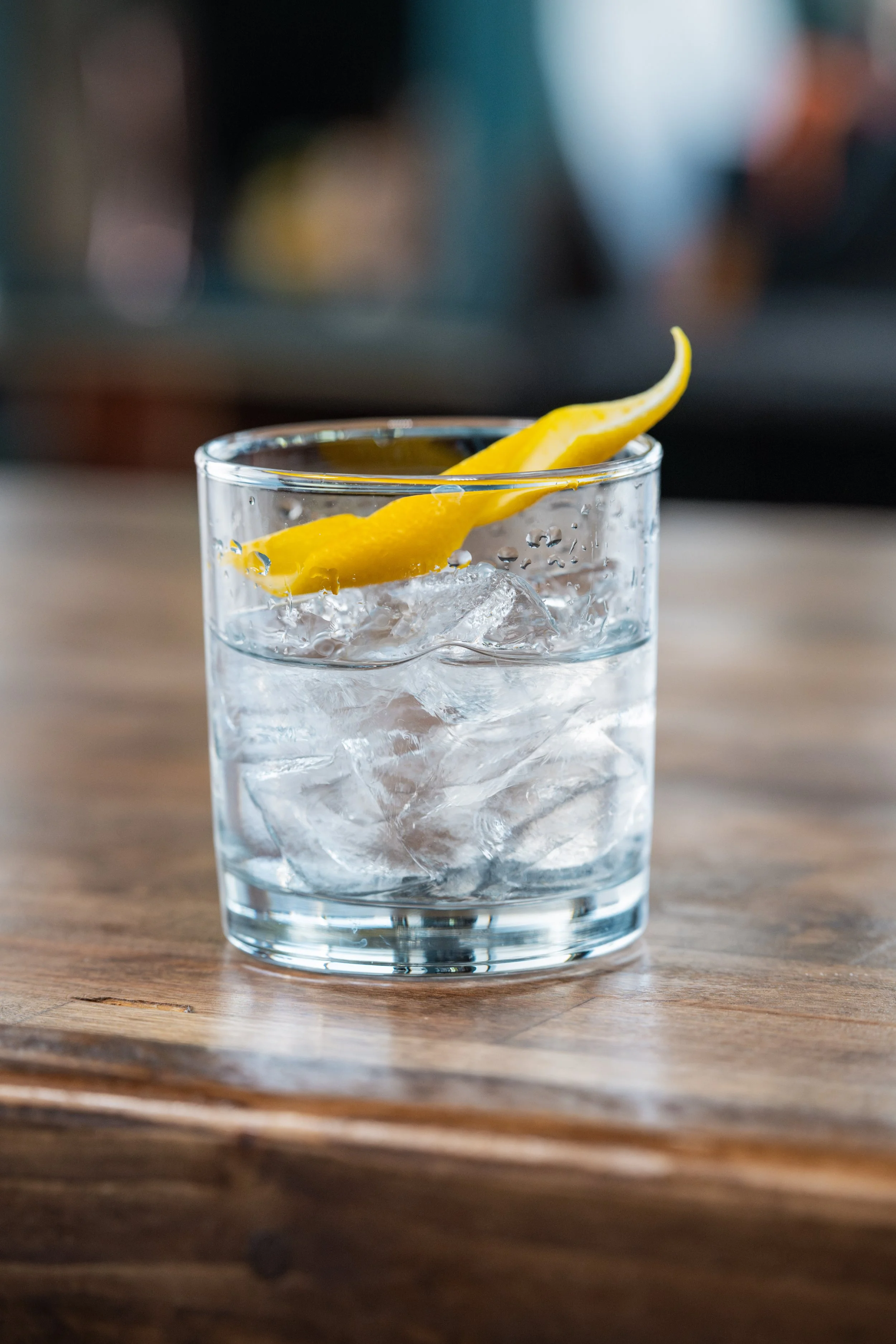 Sophisticated Suspense: Maiz Nation Whiskey Blanco, Blanco Tequila, Salted Bay Leaf Syrup, Crawfish Bitters, Lemon