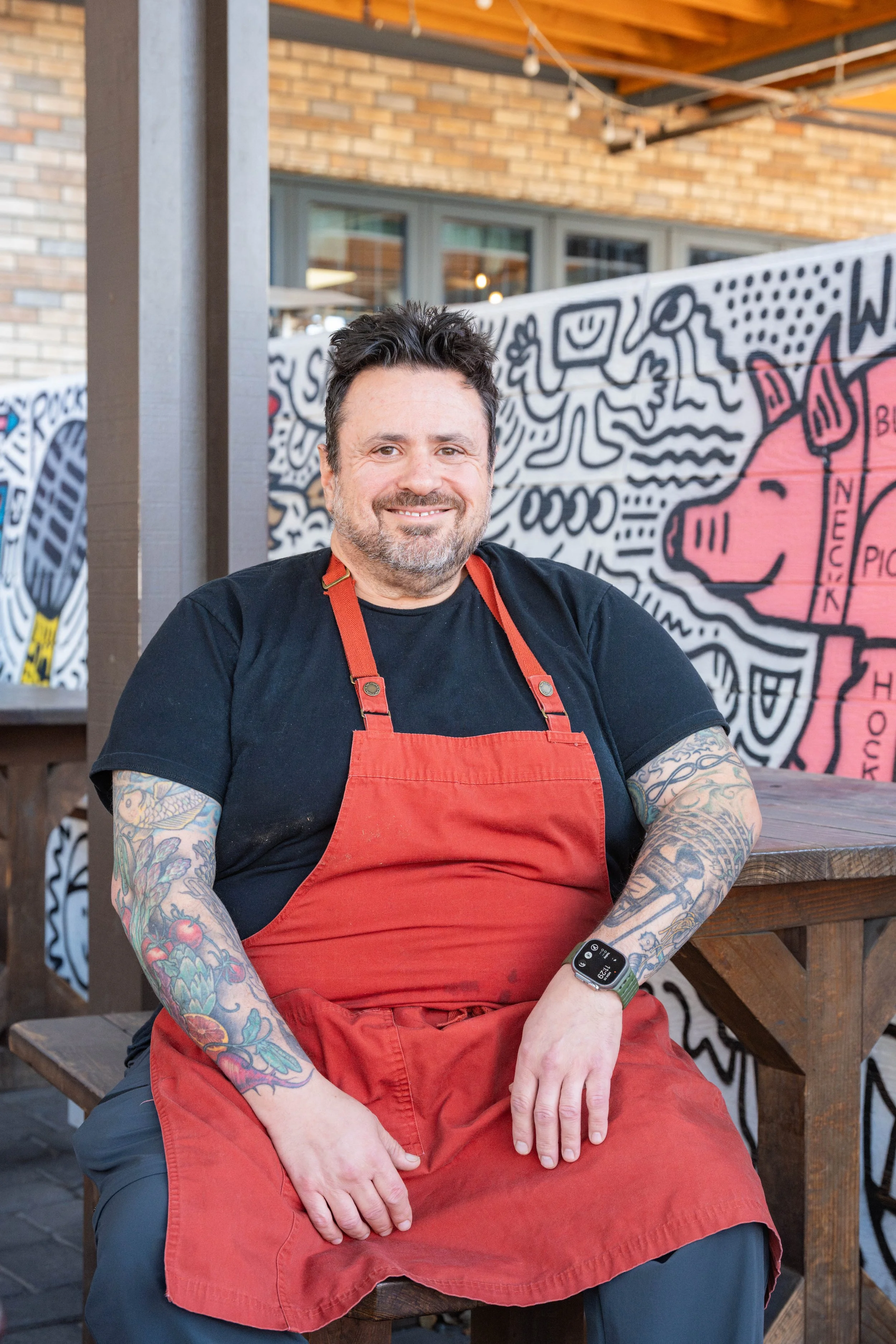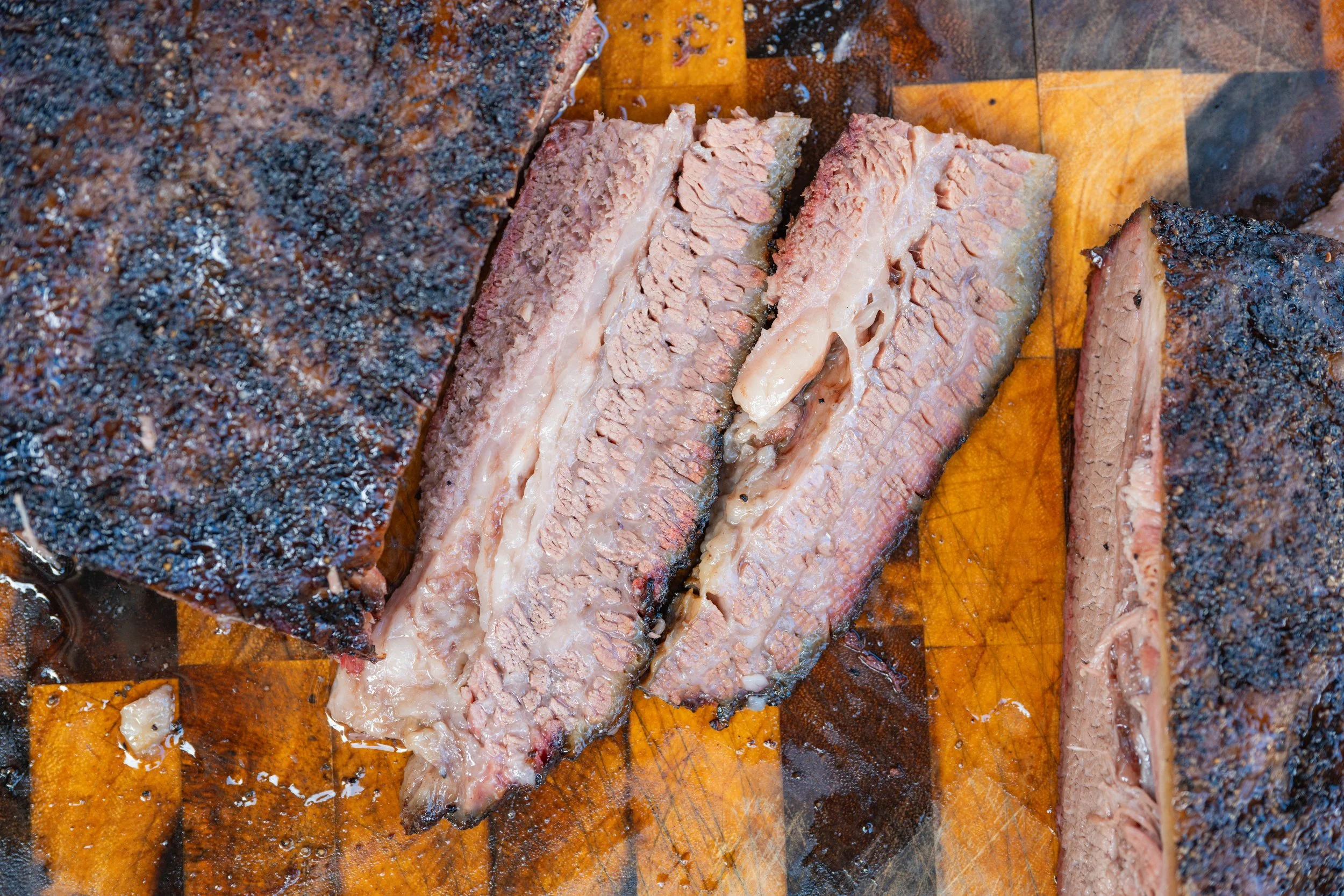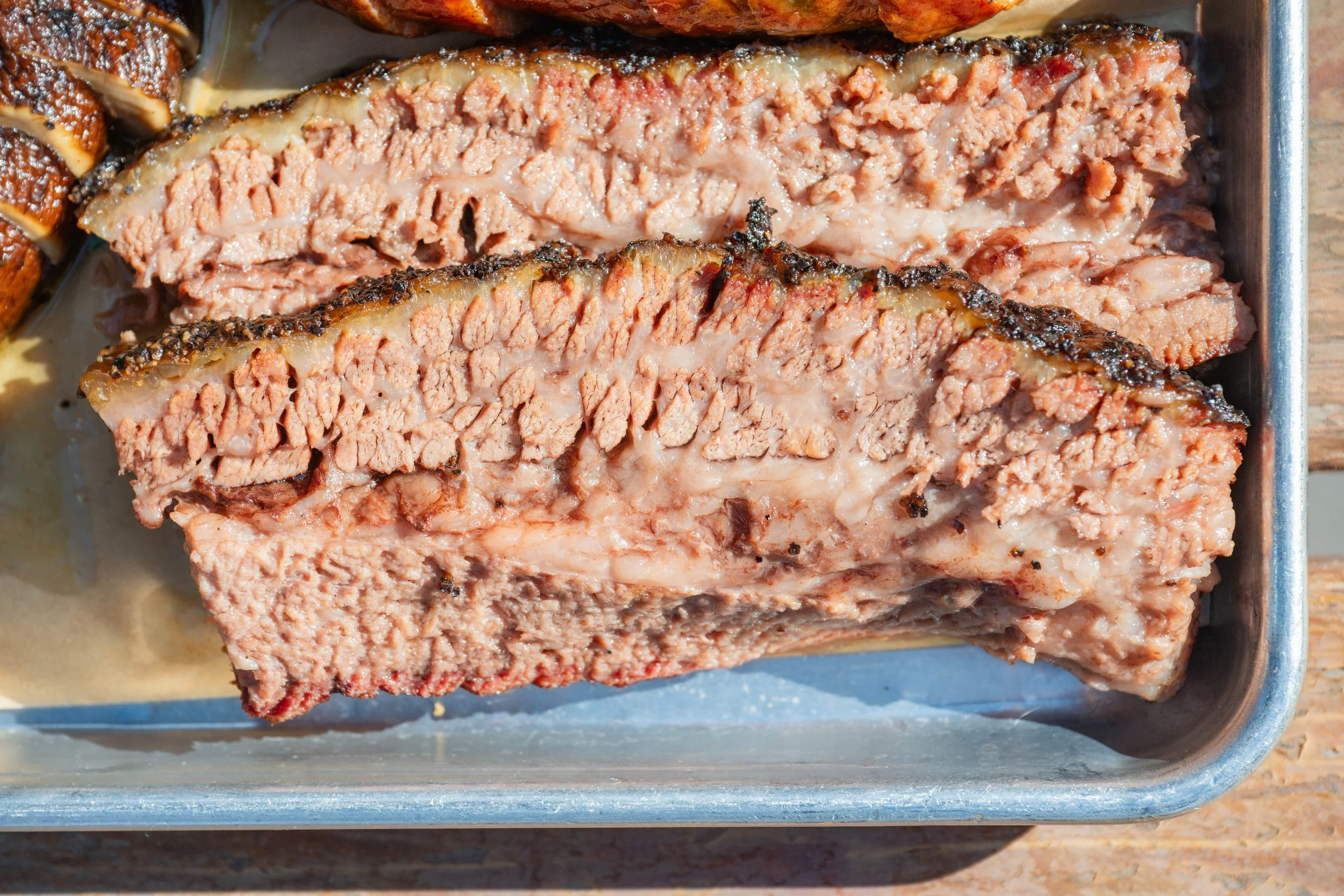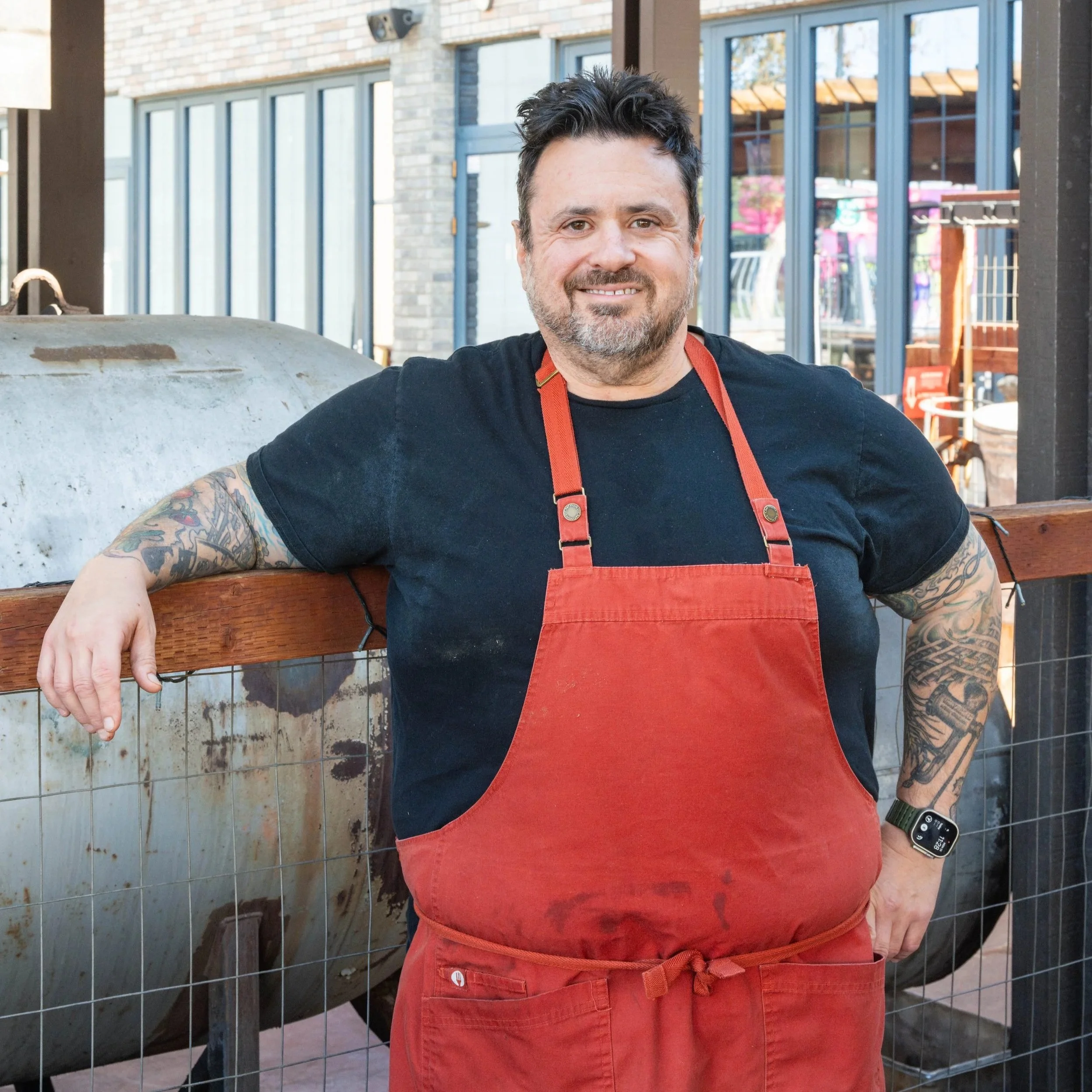 Brisket, Brisket Burnt Ends, Carolina Pulled Pork, Bourbon-Glazed Pork Belly, Smoked Bratwurst, Hatch Chile-Cheddar Hog Link, Parmesan‑Chicharrón Mac and Cheese, Roasted Broccoli, Corn Bread, Mint Chimichurri Portobello Mushrooms