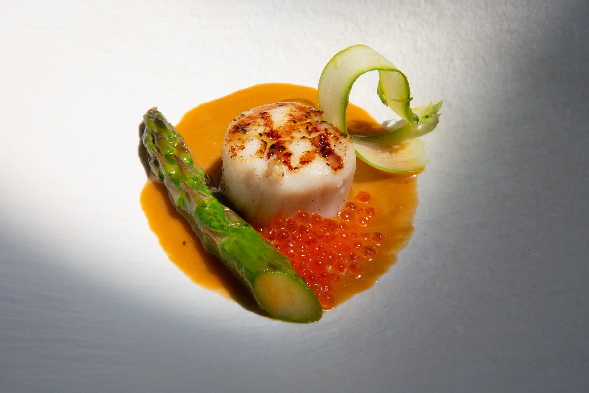 Grilled Scallop, Asparagus, Trout Roe, Velouté