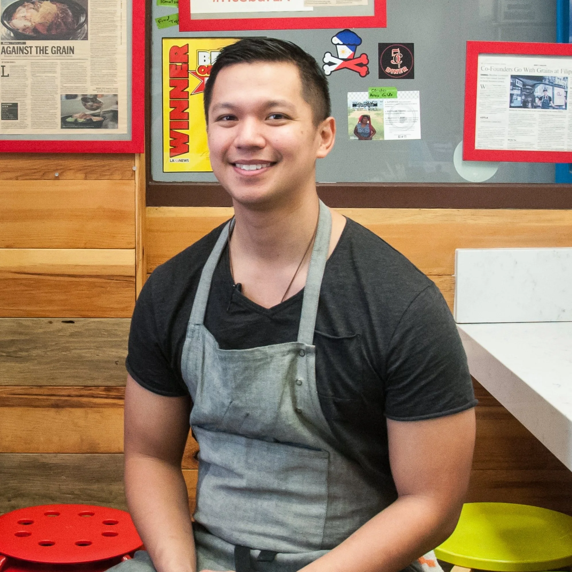 Pancit Luglog: Thick Rice Noodles, Garlic-Lime Shrimp, Shellfish Sauce, Pork Cracklings, and Chopped Egg