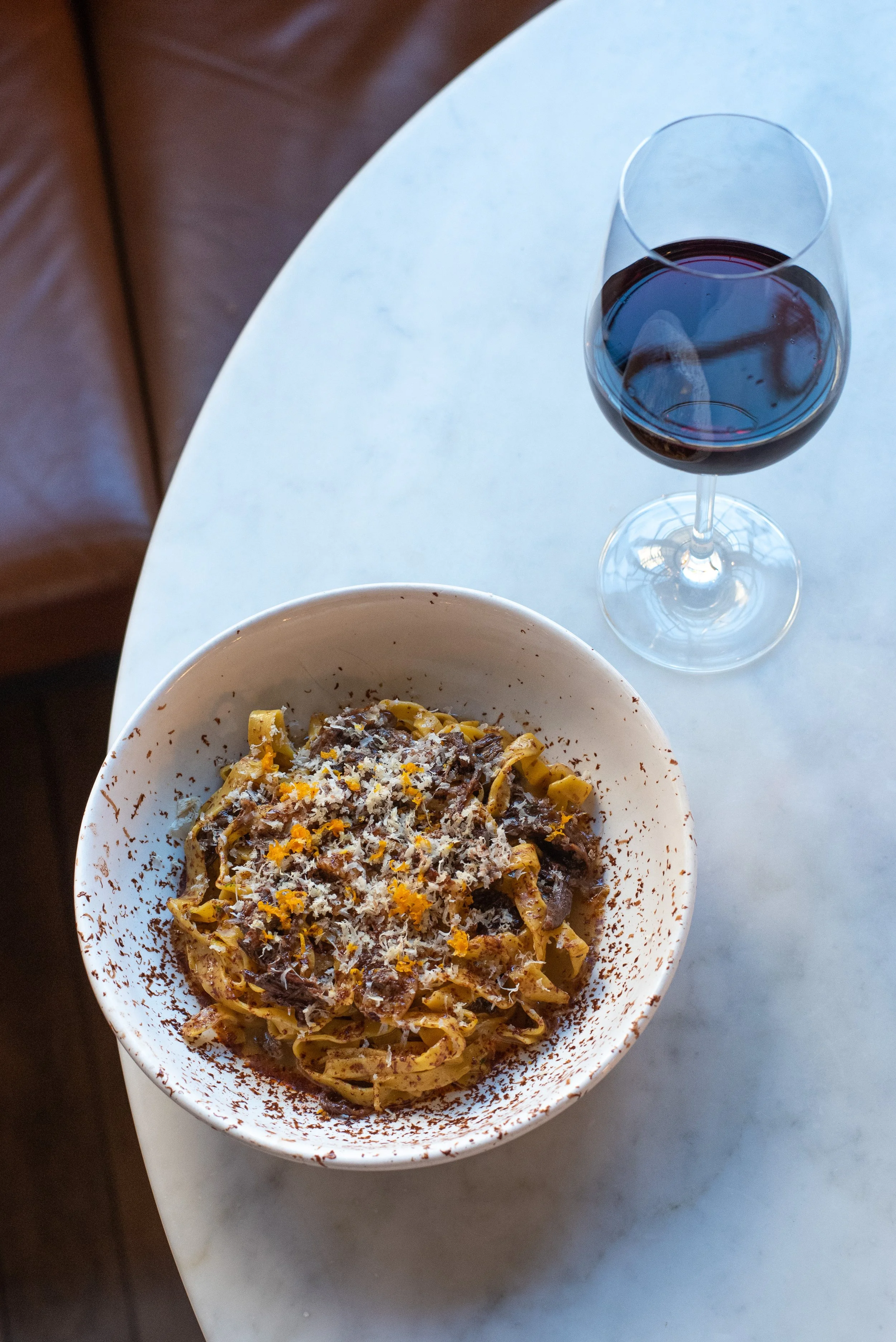 Taglierini, Wagyu Oxtail, Calabrian Chili, Valrhona Chocolate, Horseradish, Lemon