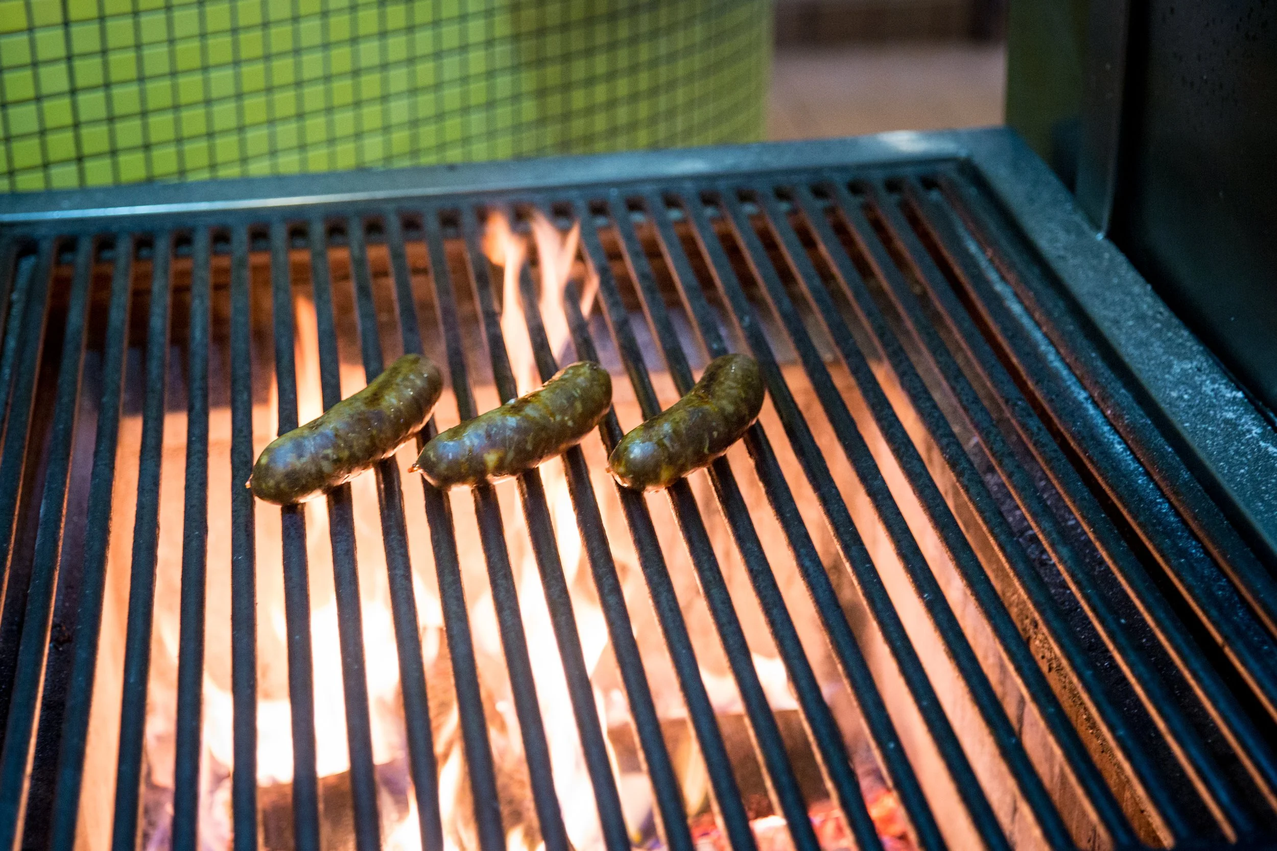 Lamb Sausage, Watermelon Rind Mostarda, Cauliflower Kraut, and Mustard Frill