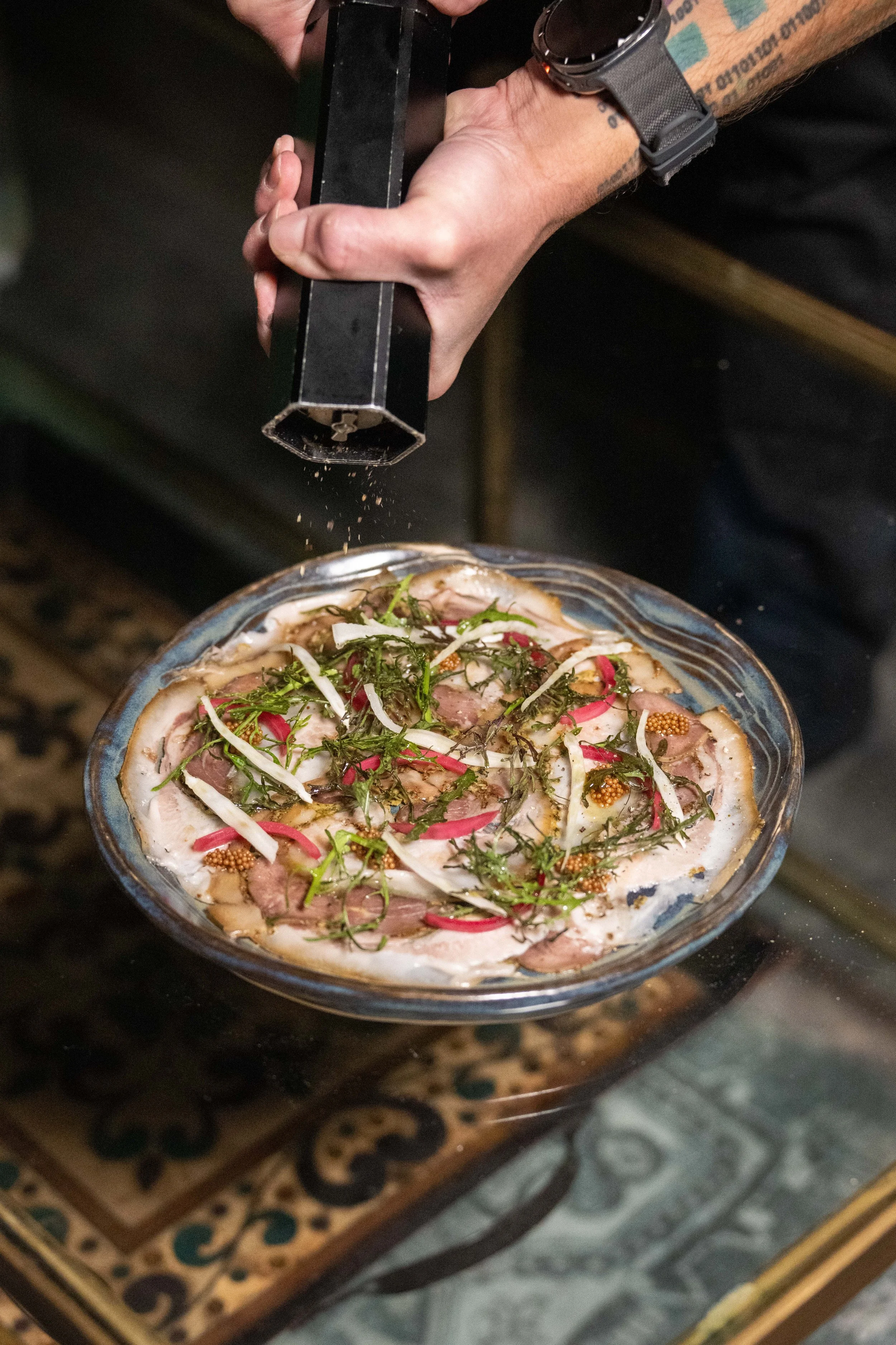 Porchetta Di Testa, Shaved Fennel, Mustard Frill, Pickled Red Onion, Mustard Seed, Smoked Sea Salt