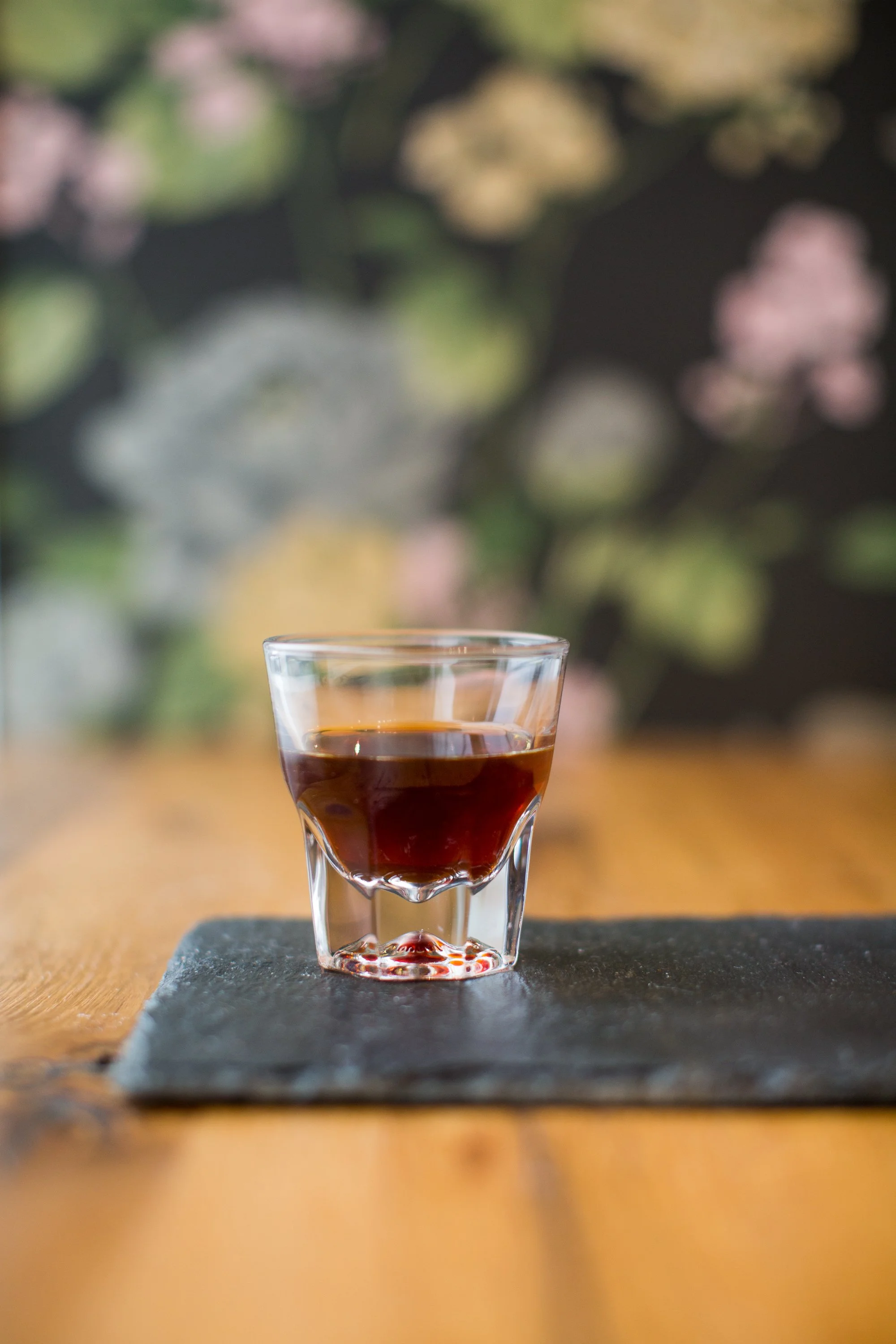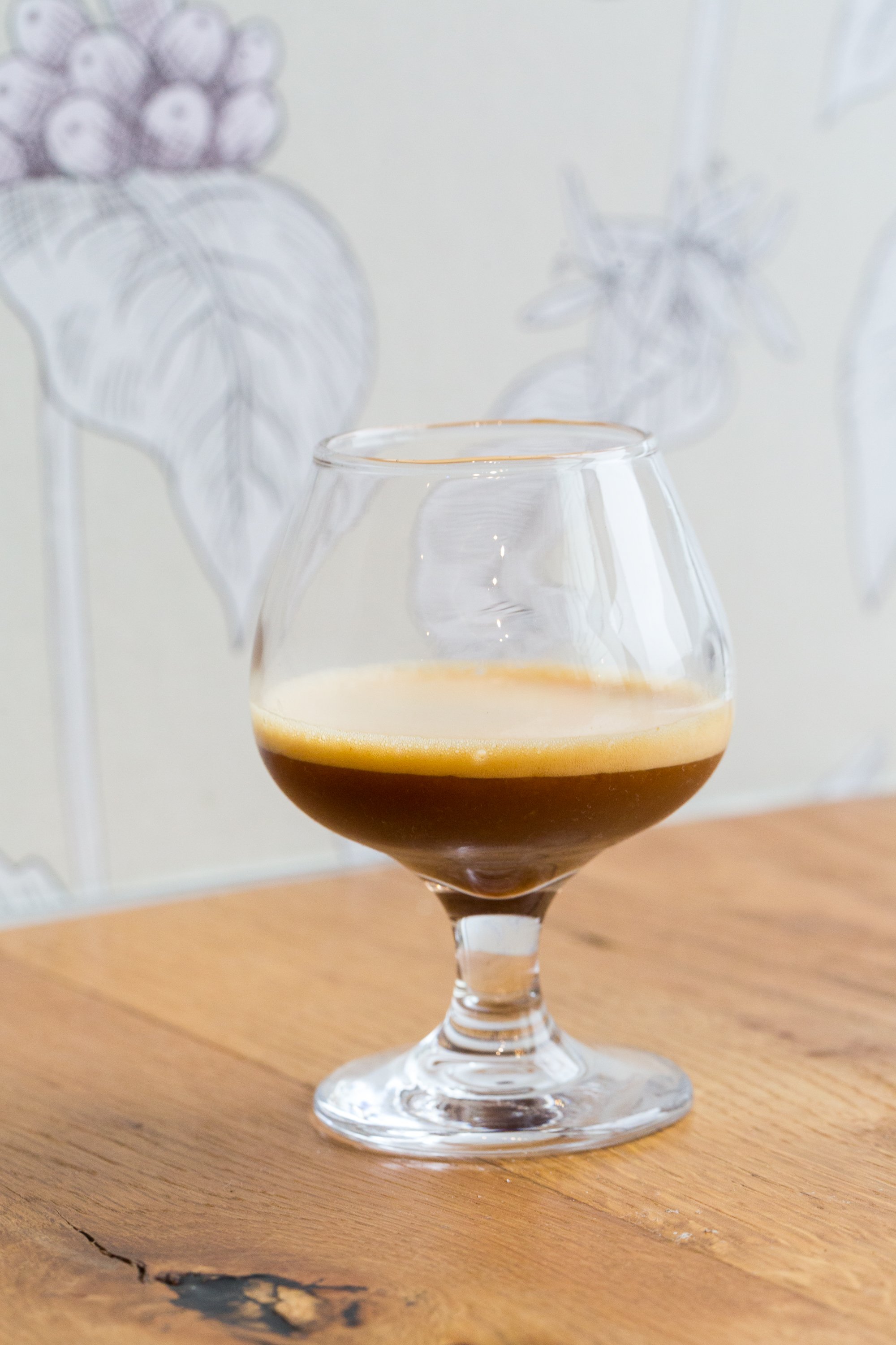 Espresso Sour: La Palma y El Tucán Natural Geisha, Lemon, Egg White, Simple Syrup, and Strawberry Essence