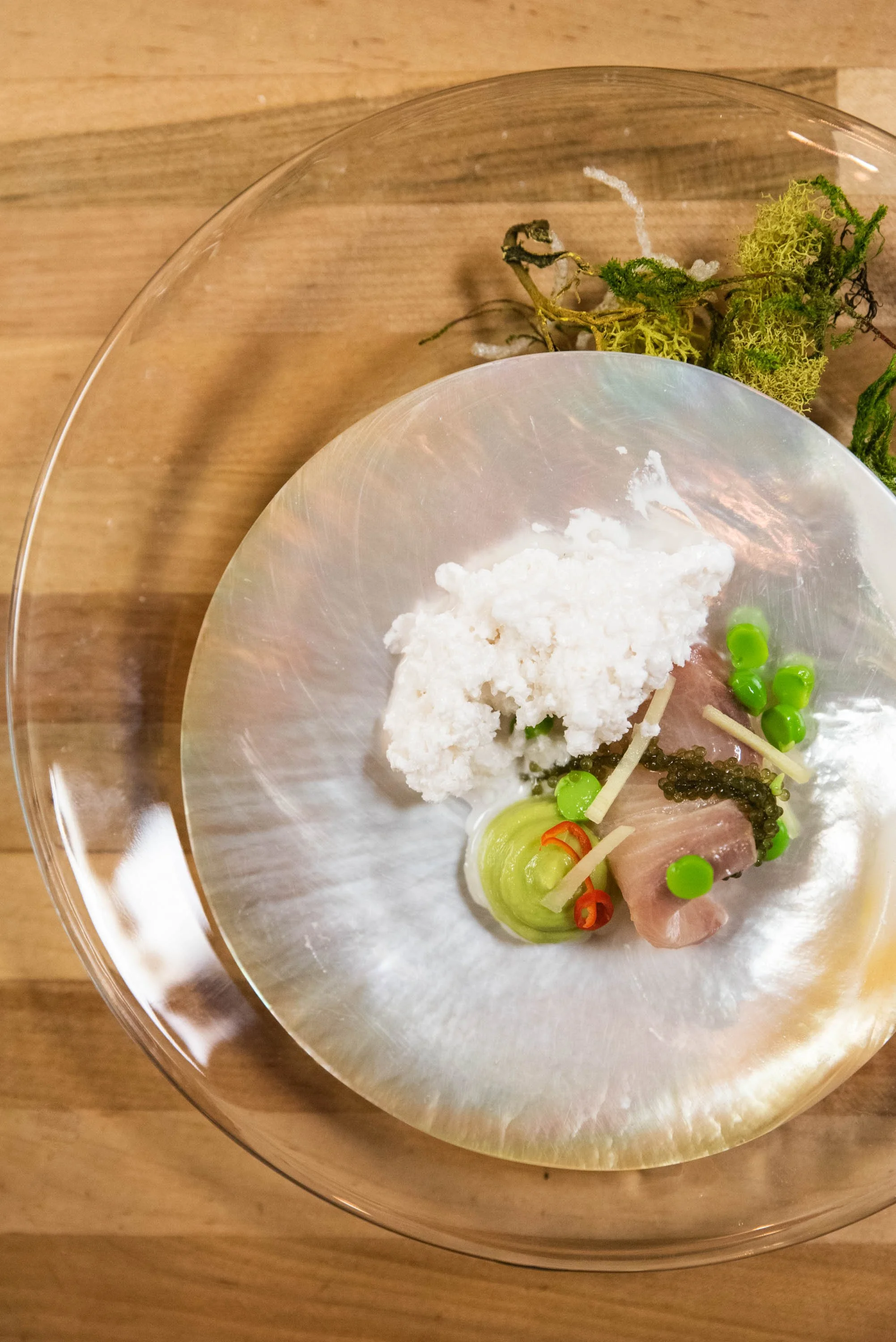 Sinuglaw: Big Eye Tuna, Smoked Pork Gelee, Pear, Radish, Creamy Coconut Milk, and Fish Sauce