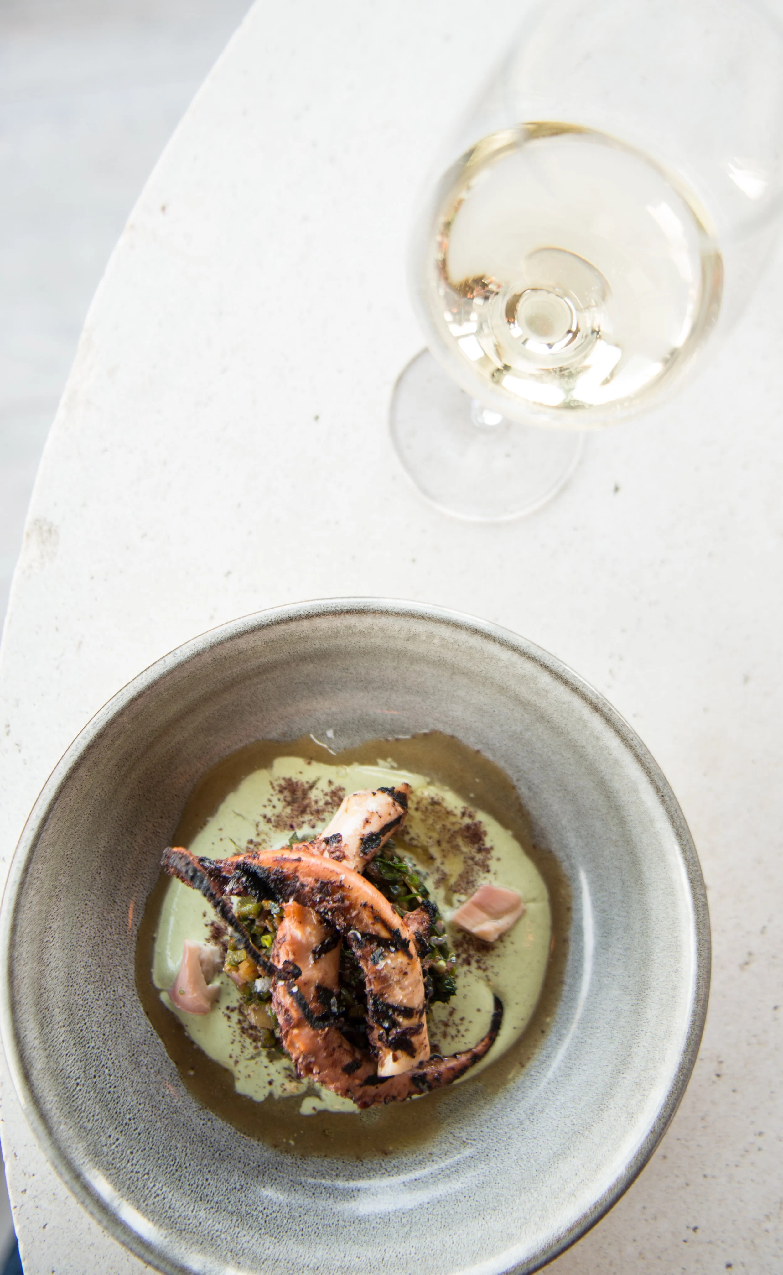 Grilled Spanish Octopus, Ezme Salad, and Ayran Sauce