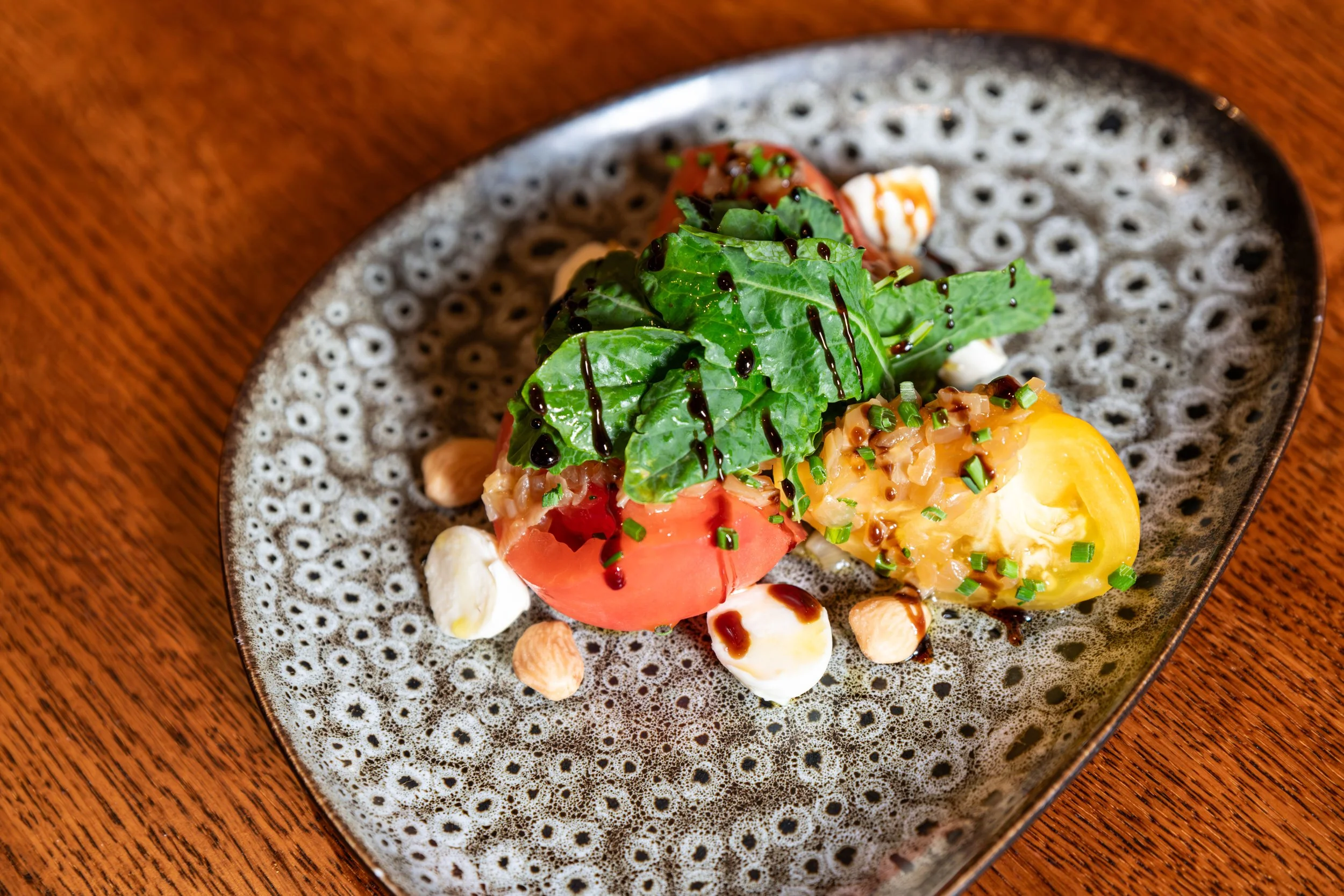 Heirloom Tomato Salad, Baby Kale, Mozzarella, Marcona Almonds, Balsamic, Olive Oil