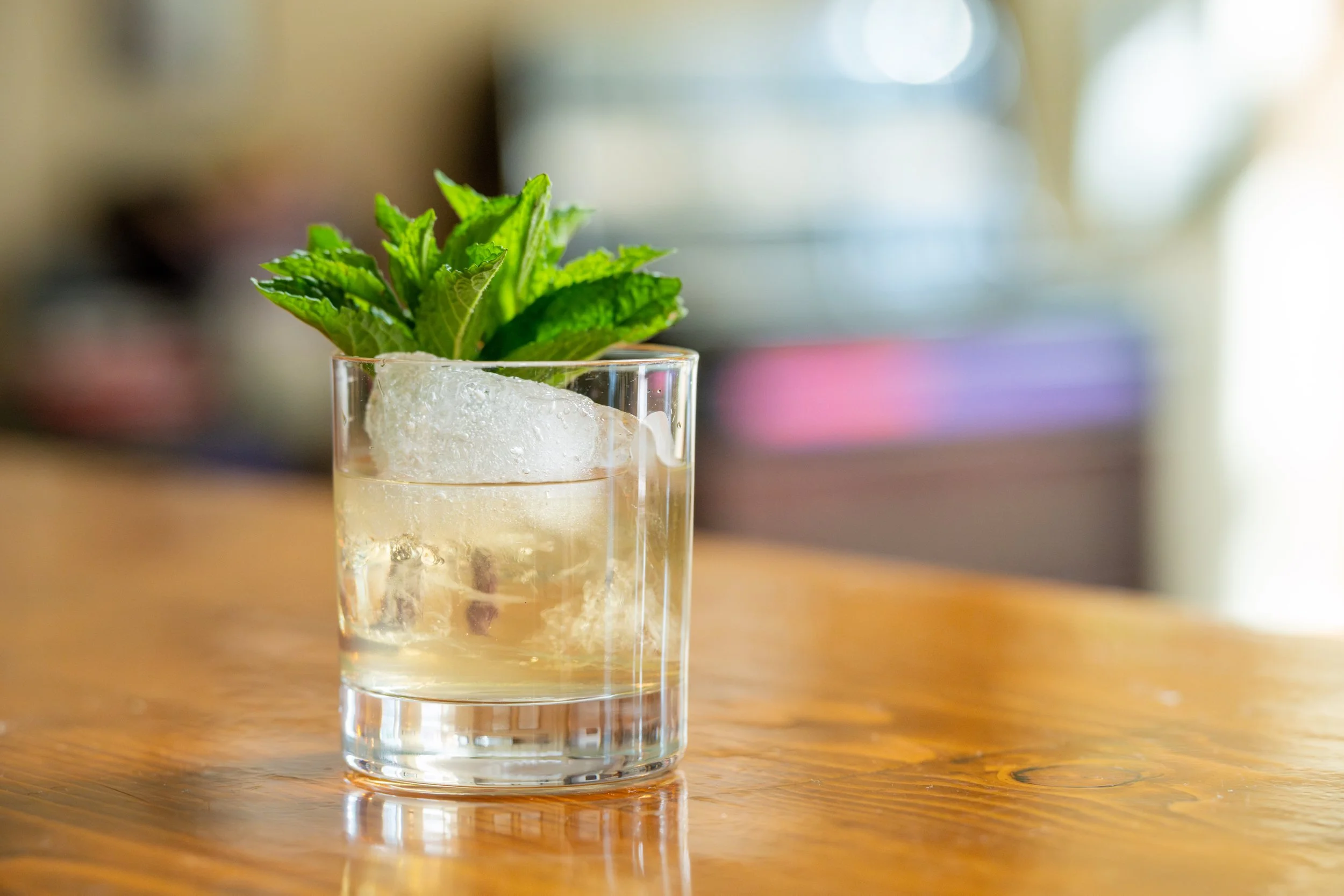 Never Say Sorry: Jamaican Rum, Reposado Tequila, Crème de Menthe, Crème de Cacao, Pandan Liqueur, Mint
