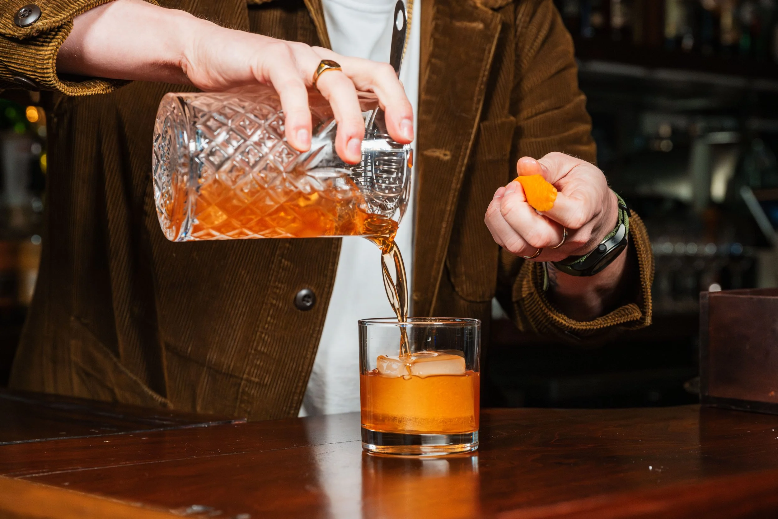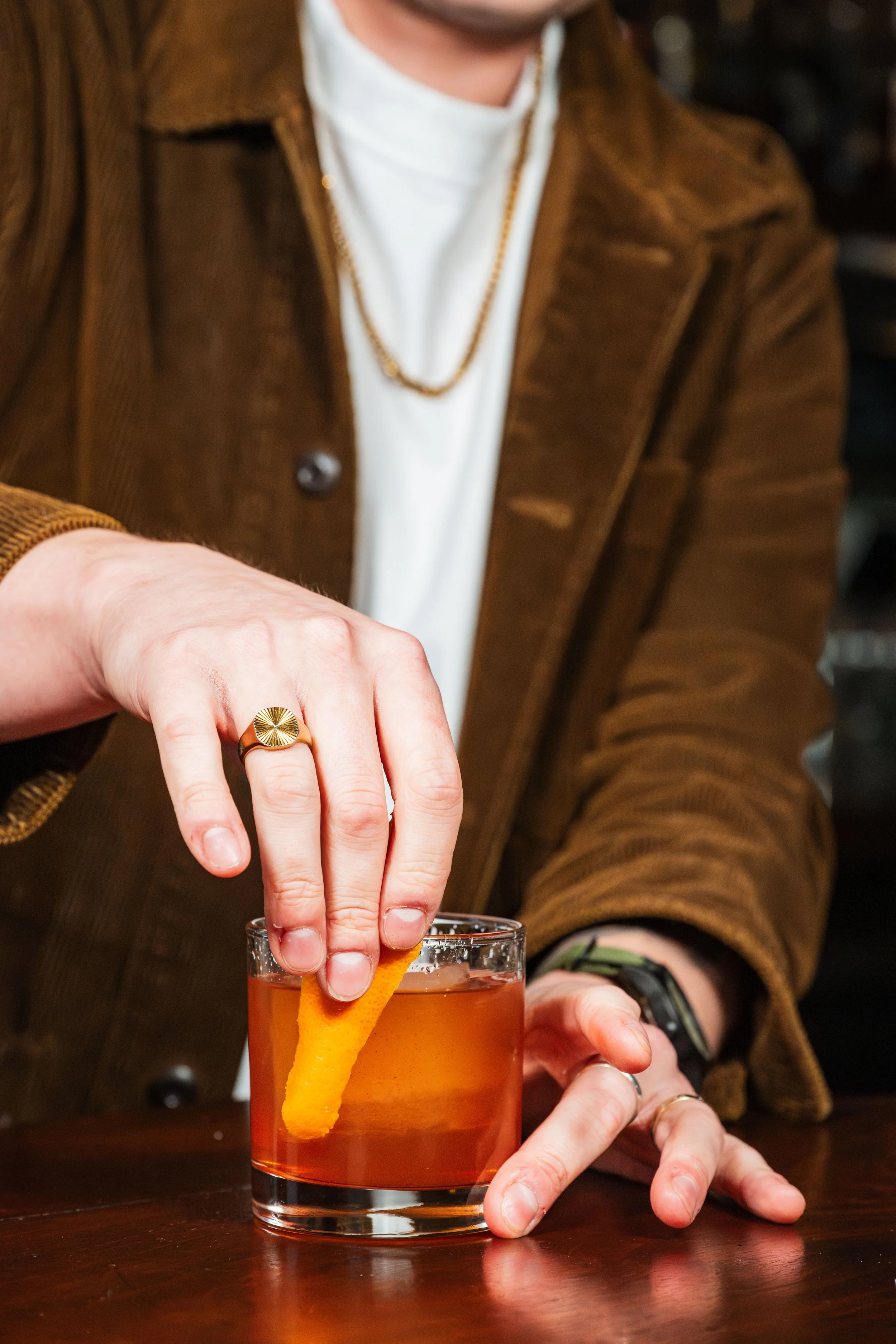 Frankie’s Old Fashioned: Bourbon, Fennel-Chile Syrup, Angostura Bitters, Sage Leaf, Orange Peel