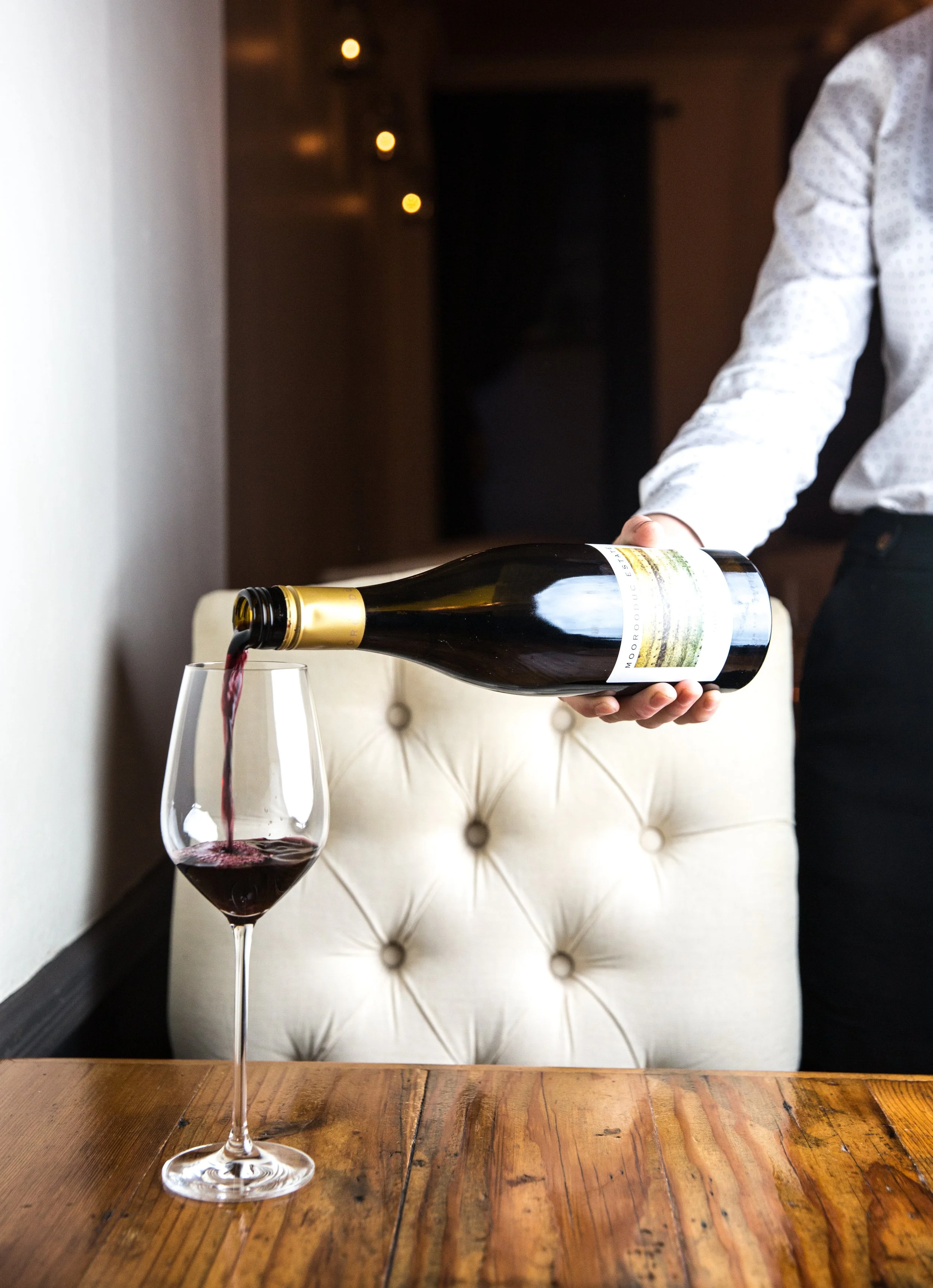 Ōra King Salmon, Beet Juice-brined Roe, Gooseberry, and Sake Beurre Blanc paired with Chardonnay, Bloomer Creek Vineyard, Finger Lakes, New York, 2013