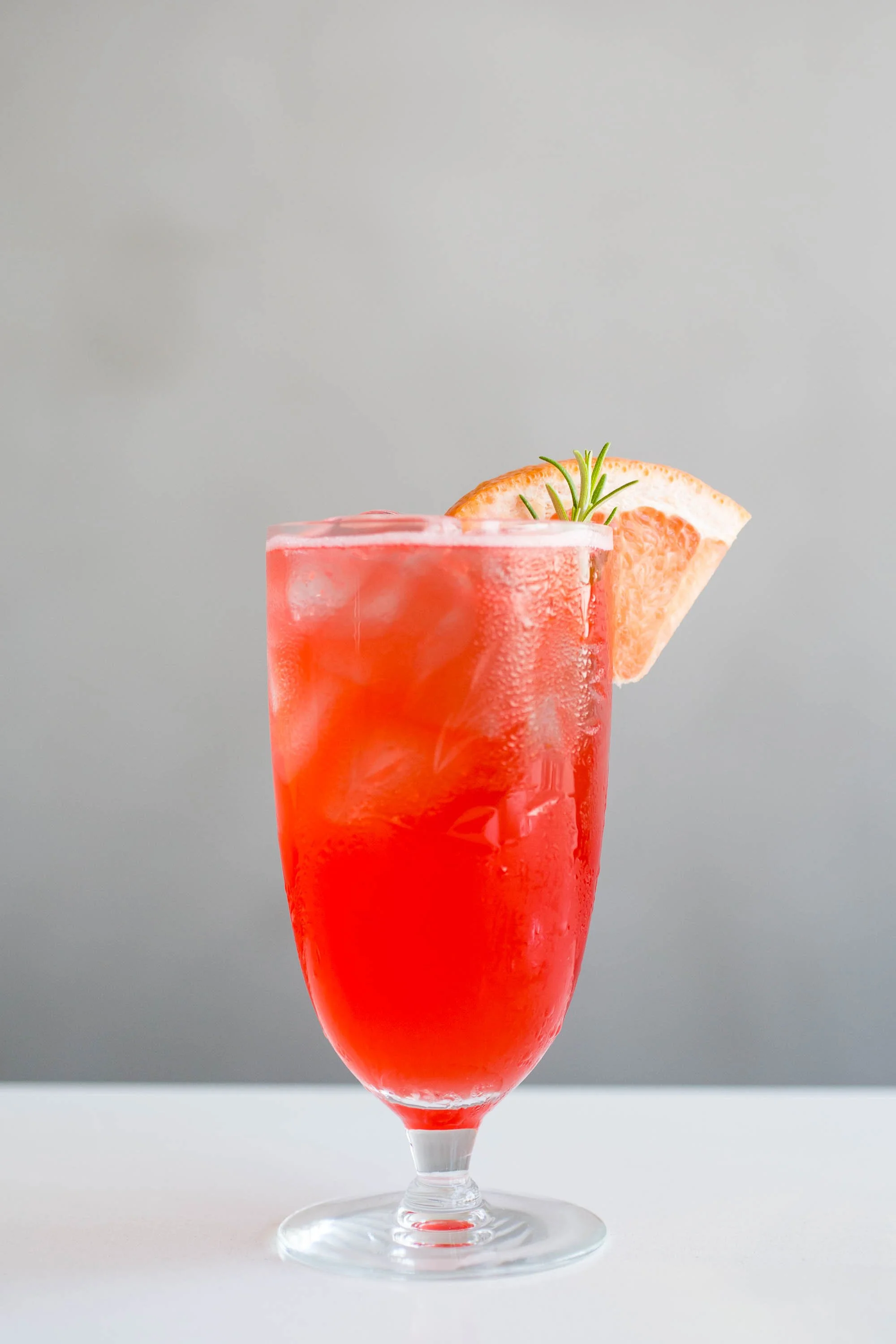 Bright Like Neon Love: Vodka, Meletti 1870, Grapefruit, Lemon, Rosemary, and Soda
