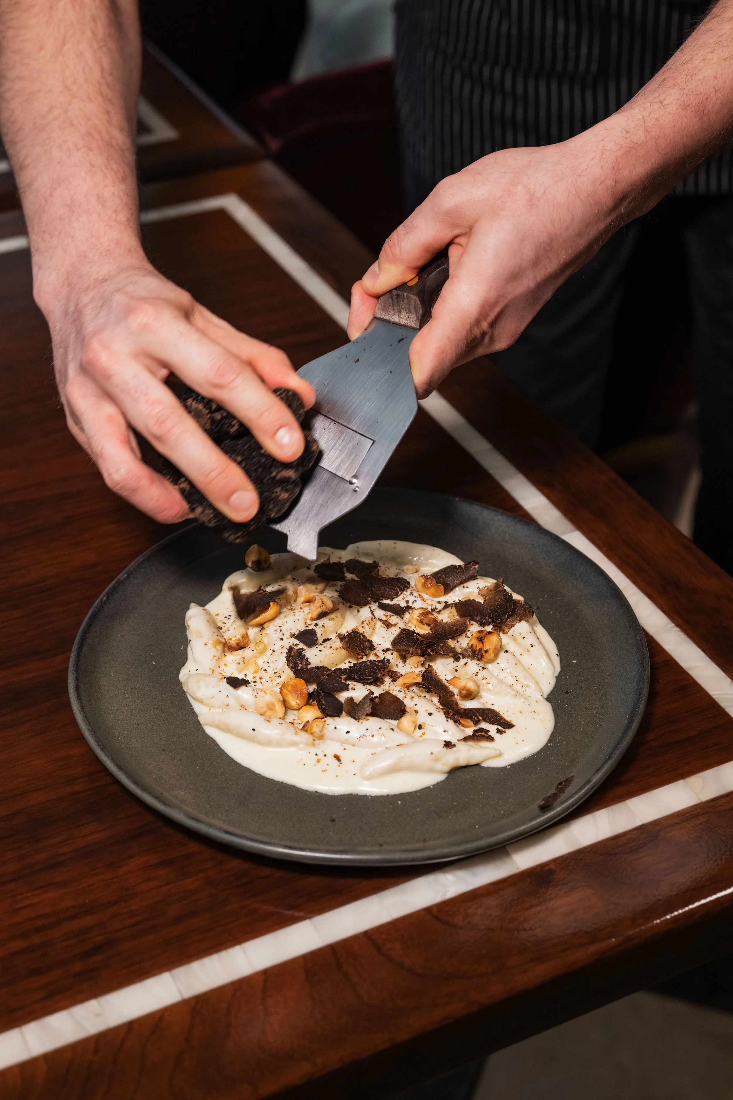 Gnocchi Alla Bava, Ricotta-Fontina Cream Sauce, Parmesan, Toasted Hazelnuts, Nutmeg, Shaved Black Truffles