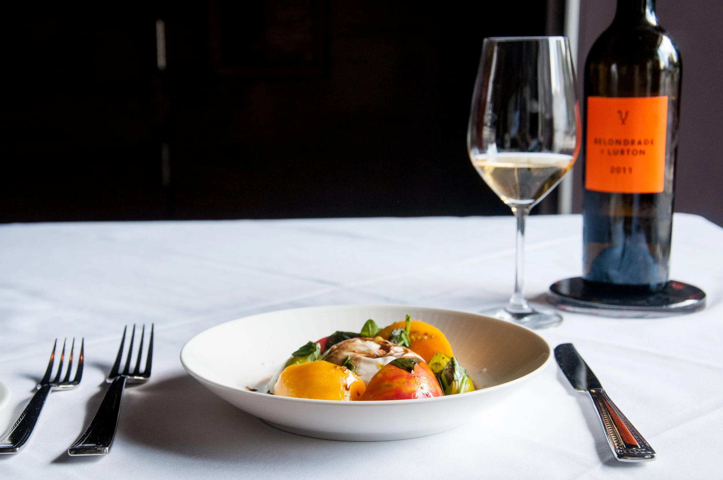 Burrata, Tomato, Basil, Arugula, and Aged Balsamic paired with Verdejo, Bodega Belondrade y Lurton, Rueda, Spain, 2011