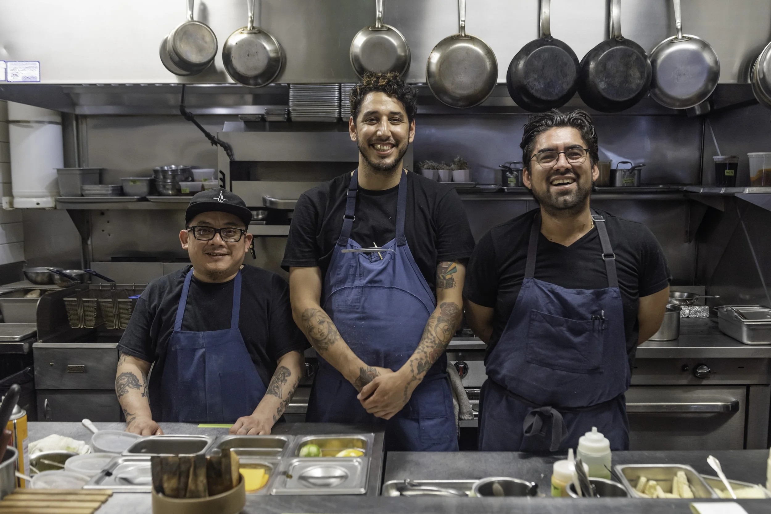 Charred Spanish Octopus, Baby Spinach Salad, Passionfruit Vinaigrette, Tarragon Aïoli, Meyer Lemon, Chile Pasilla Mixe