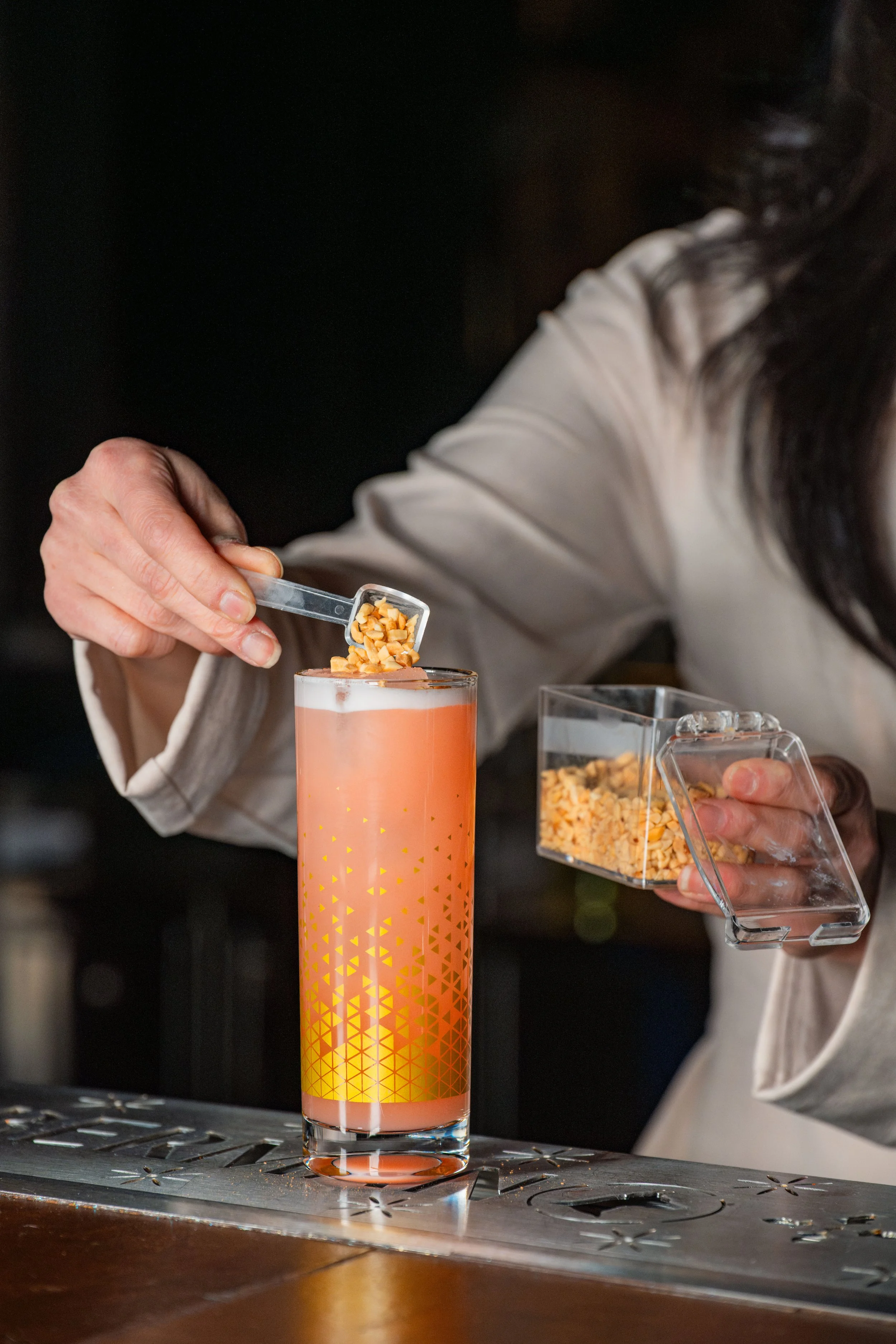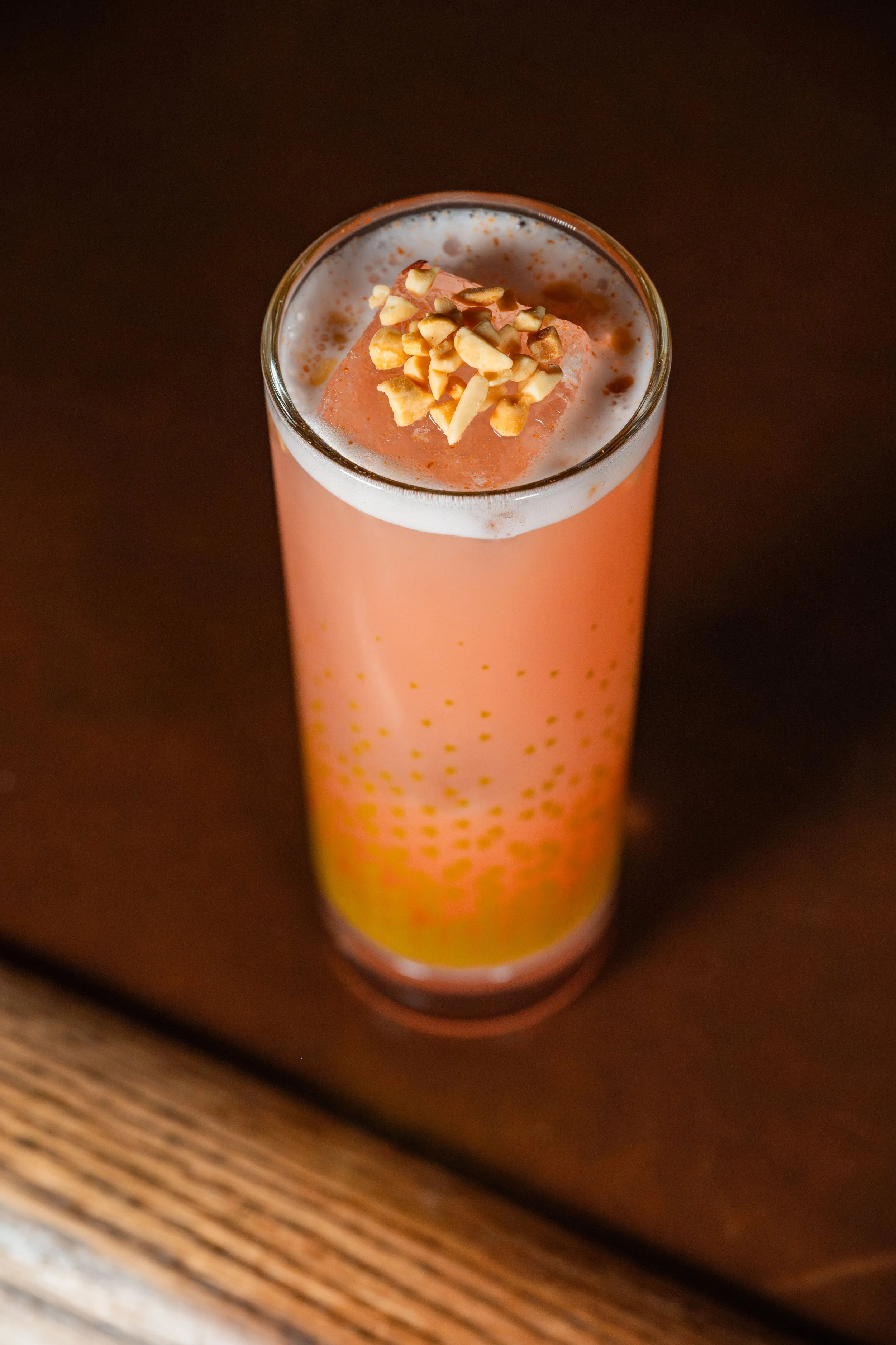 SaharI: Tequila Blanco, Hibiscus Syrup, Cantaloupe Cordial, Rice Milk, Grated Cinnamon, Peanuts