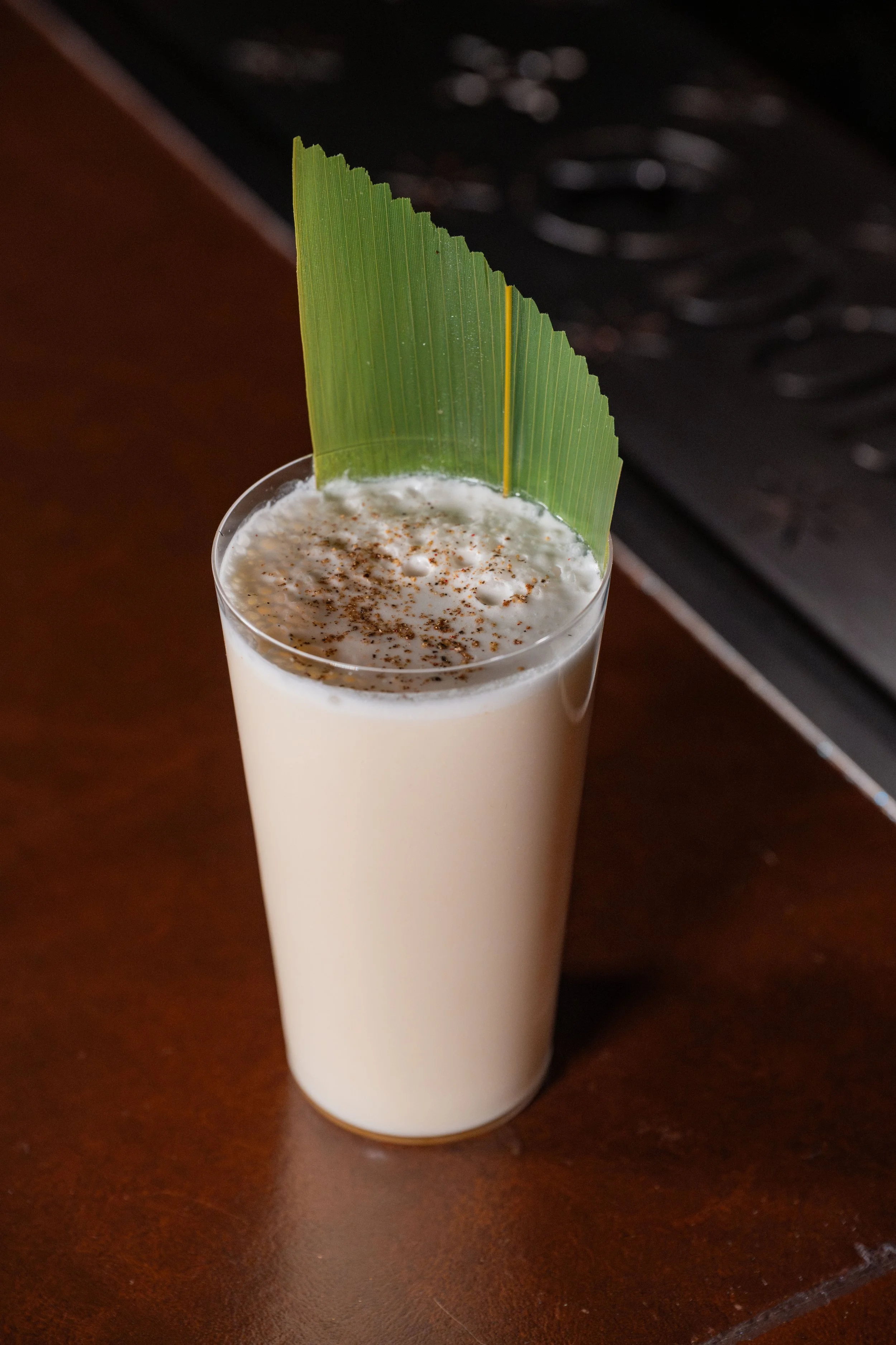 Tom Kha Fizz: Gin, Lime, Tom Yum Syrup, Bird’s Eye Chiles, Heavy Cream, Egg White, Coconut Water
