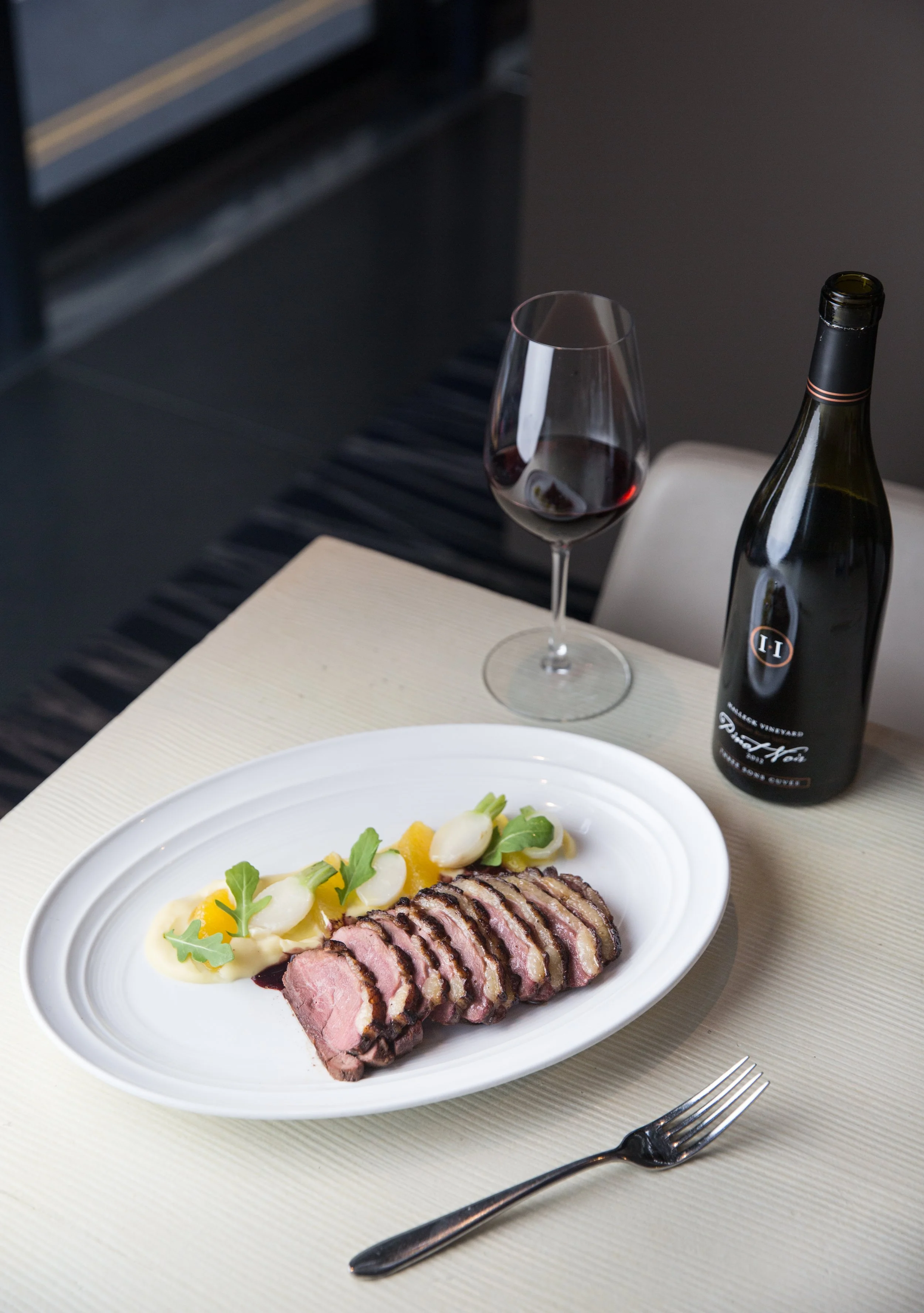 Duck Breast, Parsnip Purée, Turnips, and Huckleberry Sauce