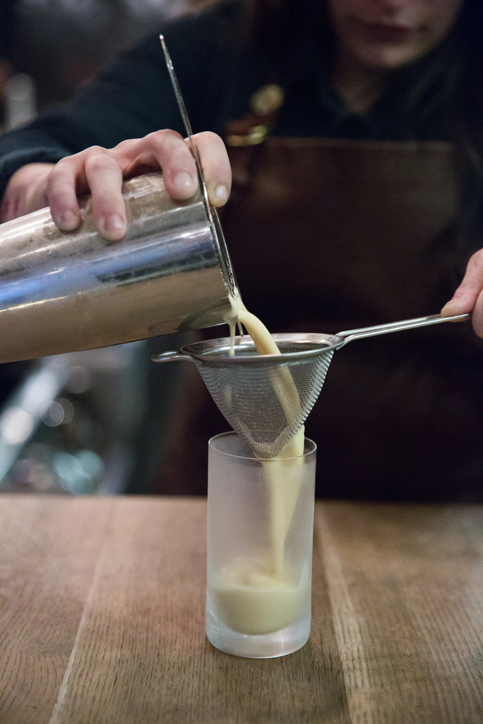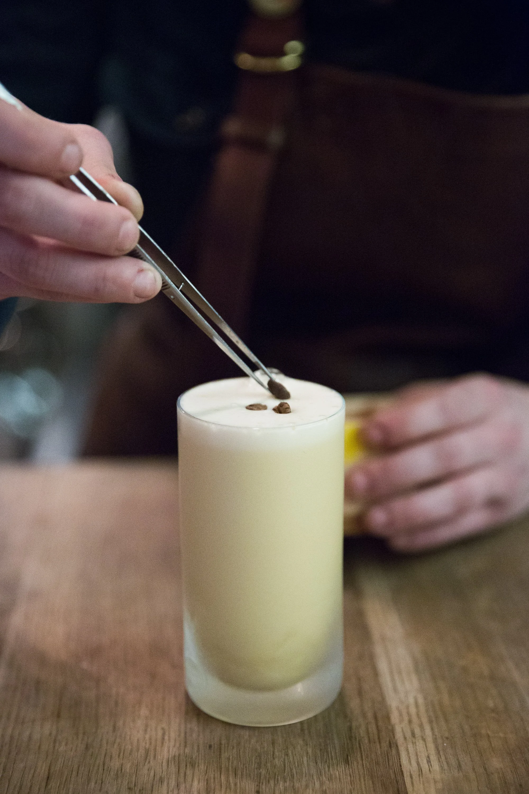 Falling Water: Four Letter Word Cold Brew Coffee, Rhine Hall Plum Brandy, Cardamaro and Whole Egg