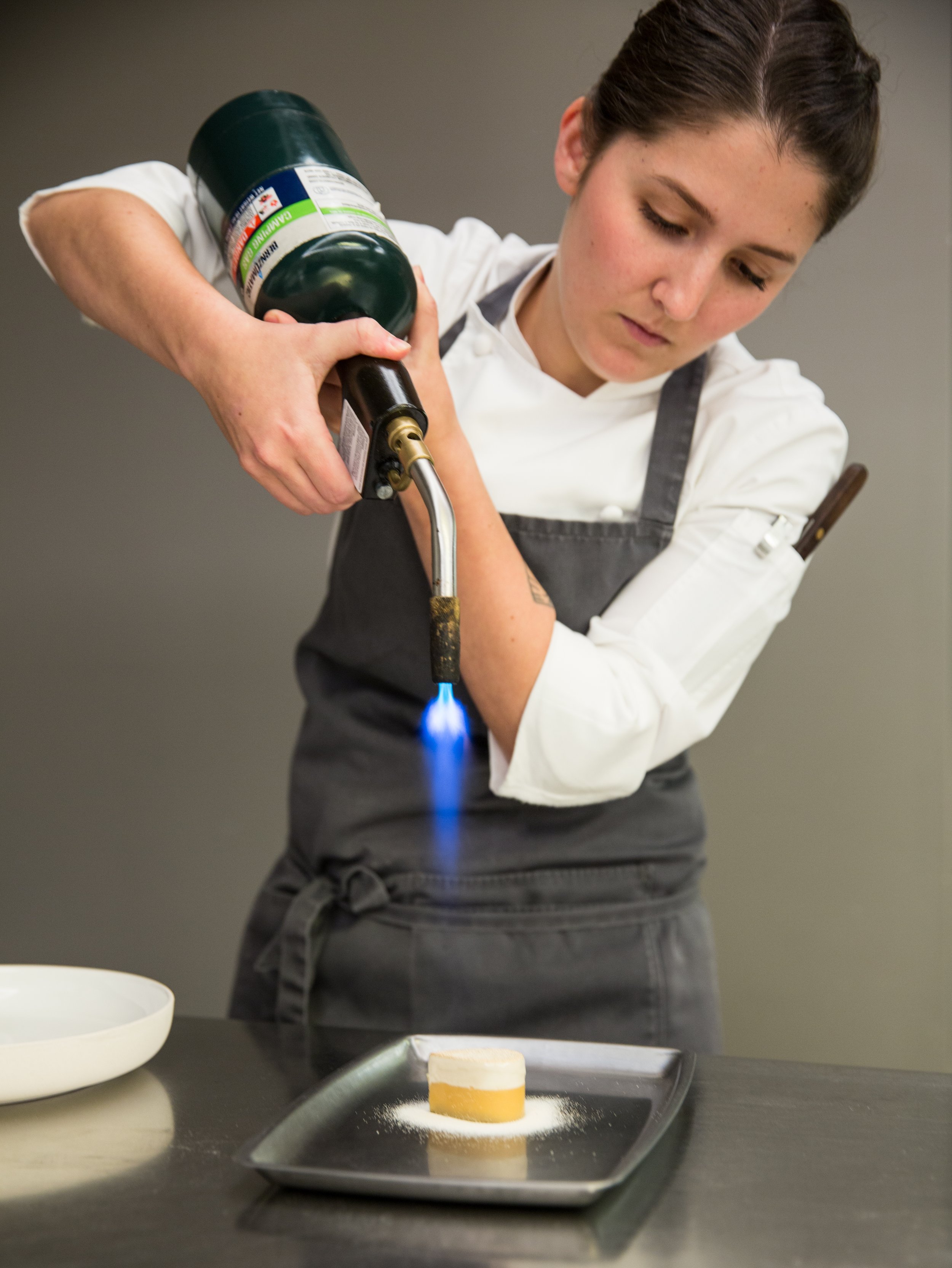 Roasted Peach, Honey Custard, Crème Fraîche Ice Cream, and Peach Shingles