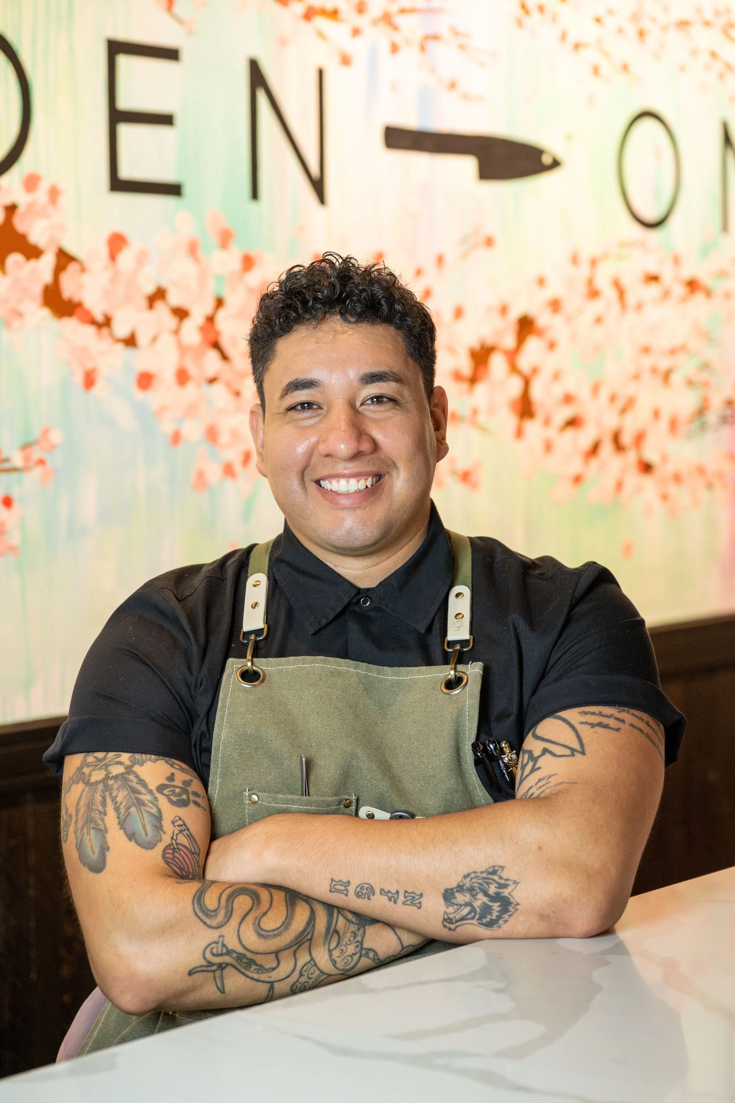 Burabuzu Crudo, Ají Amarillo-Tom Kha Sauce, Fried Kale, Tempura Hearts of Palm, Corn Shoots