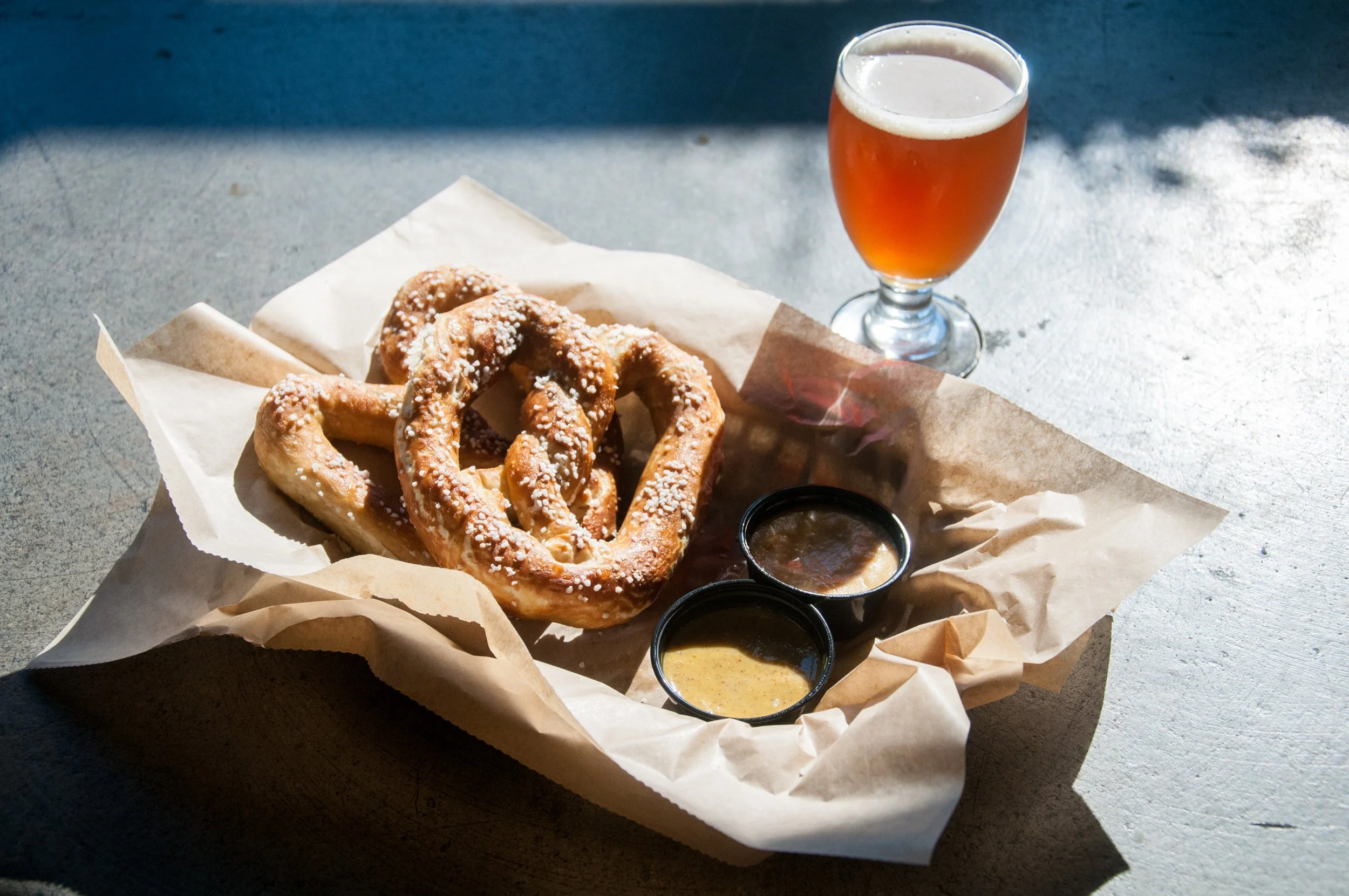 Pretzels, Fondue, and Sweet and Spicy Mustard