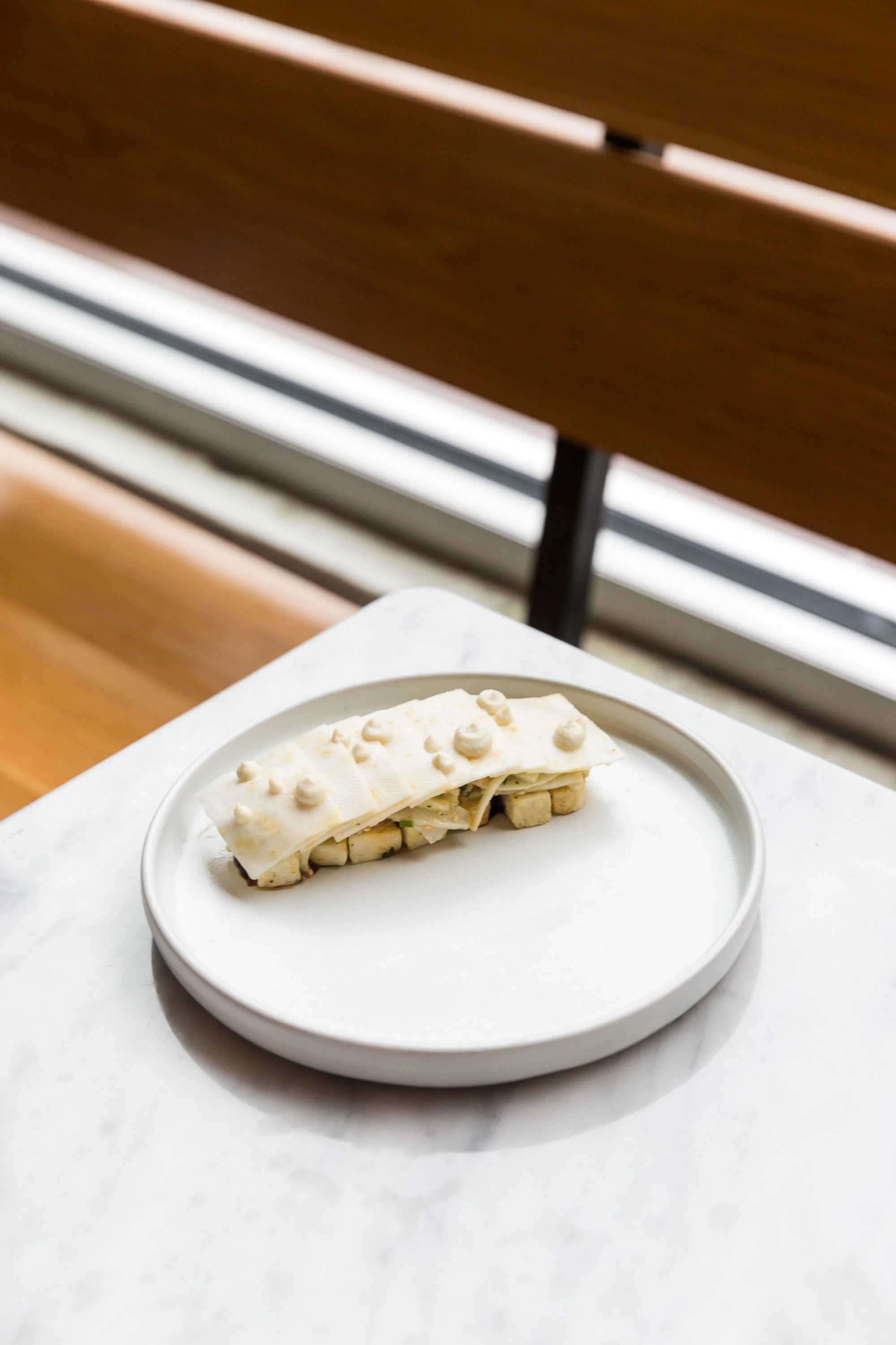 Celery Root Caponata, Moroccan Black Olive Caramel, Roasted Celery Root, Shaved Fennel, Onion, Sesame Seeds, and Celery Root Purée
