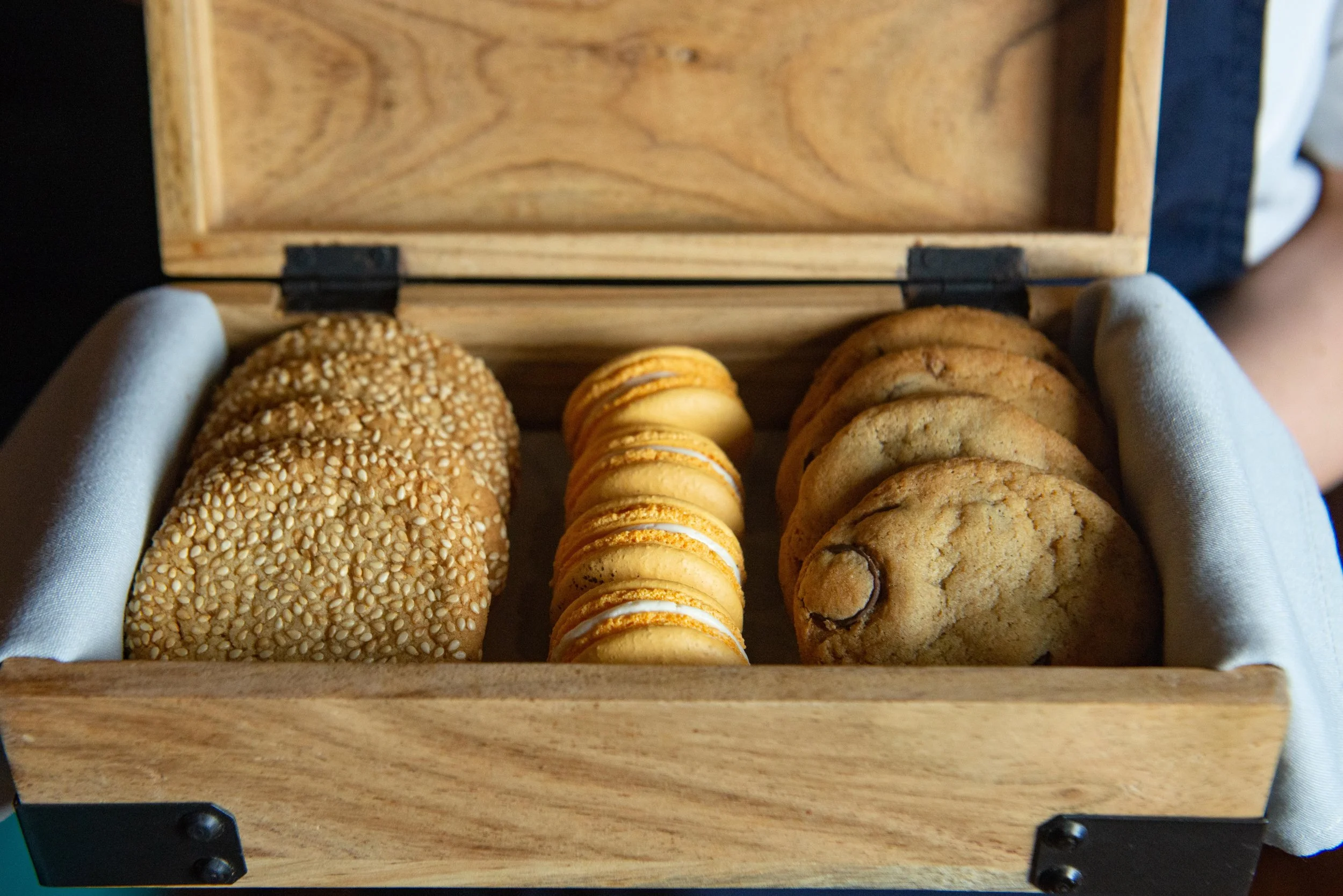 Cookie Box: Peanut Butter Toasted Sesame, Citrus Macaron, Sourdough Chocolate Chip