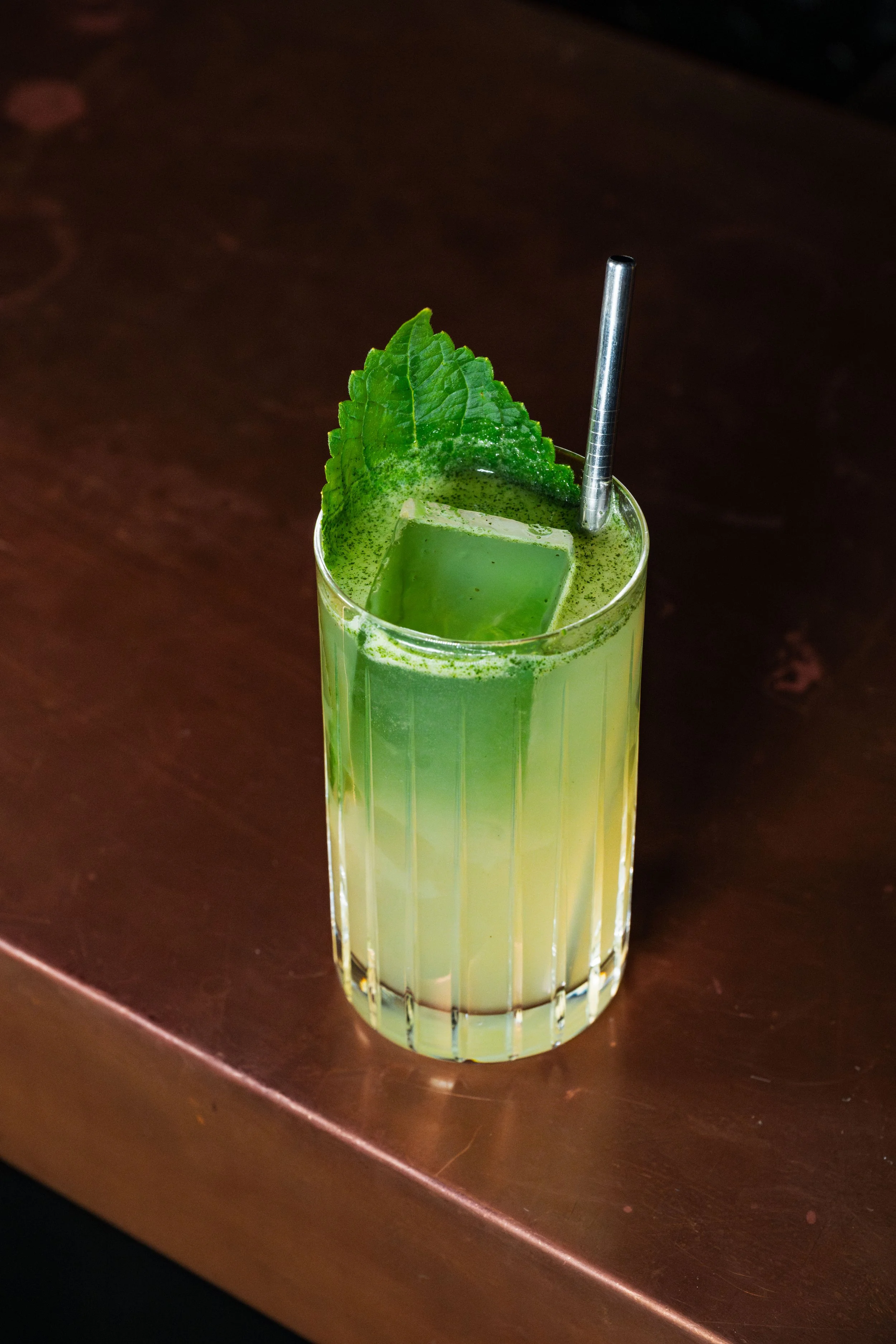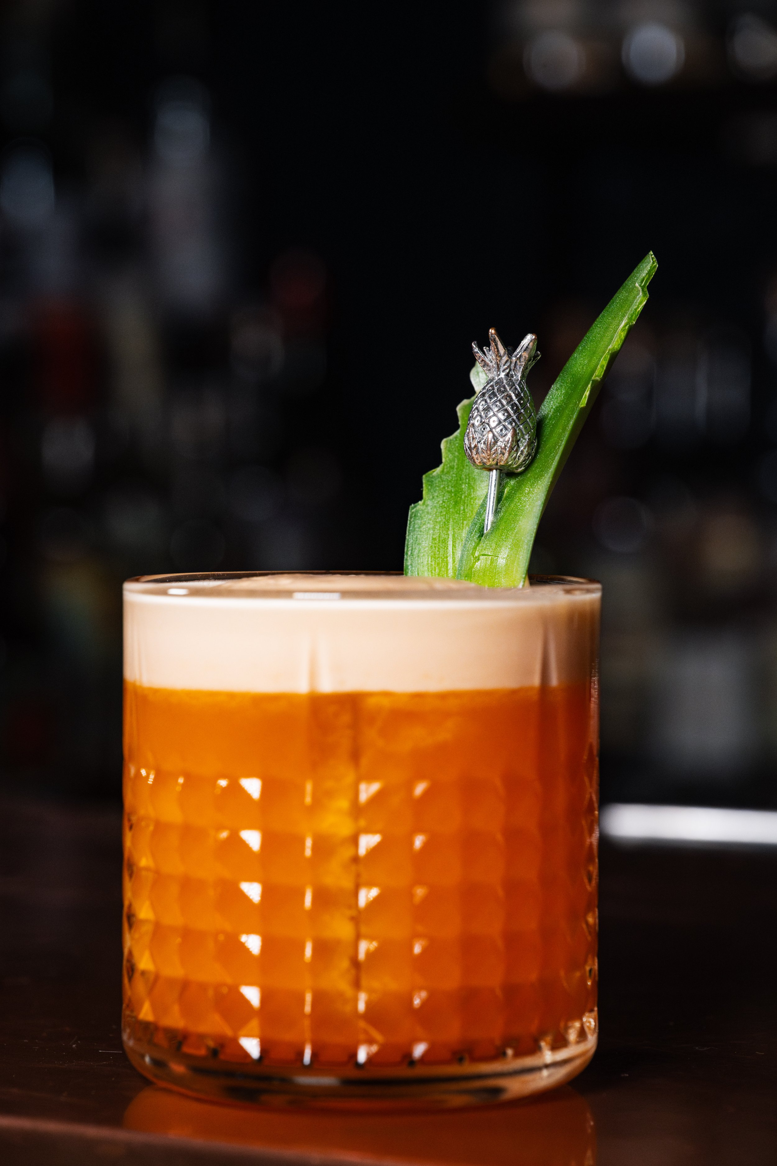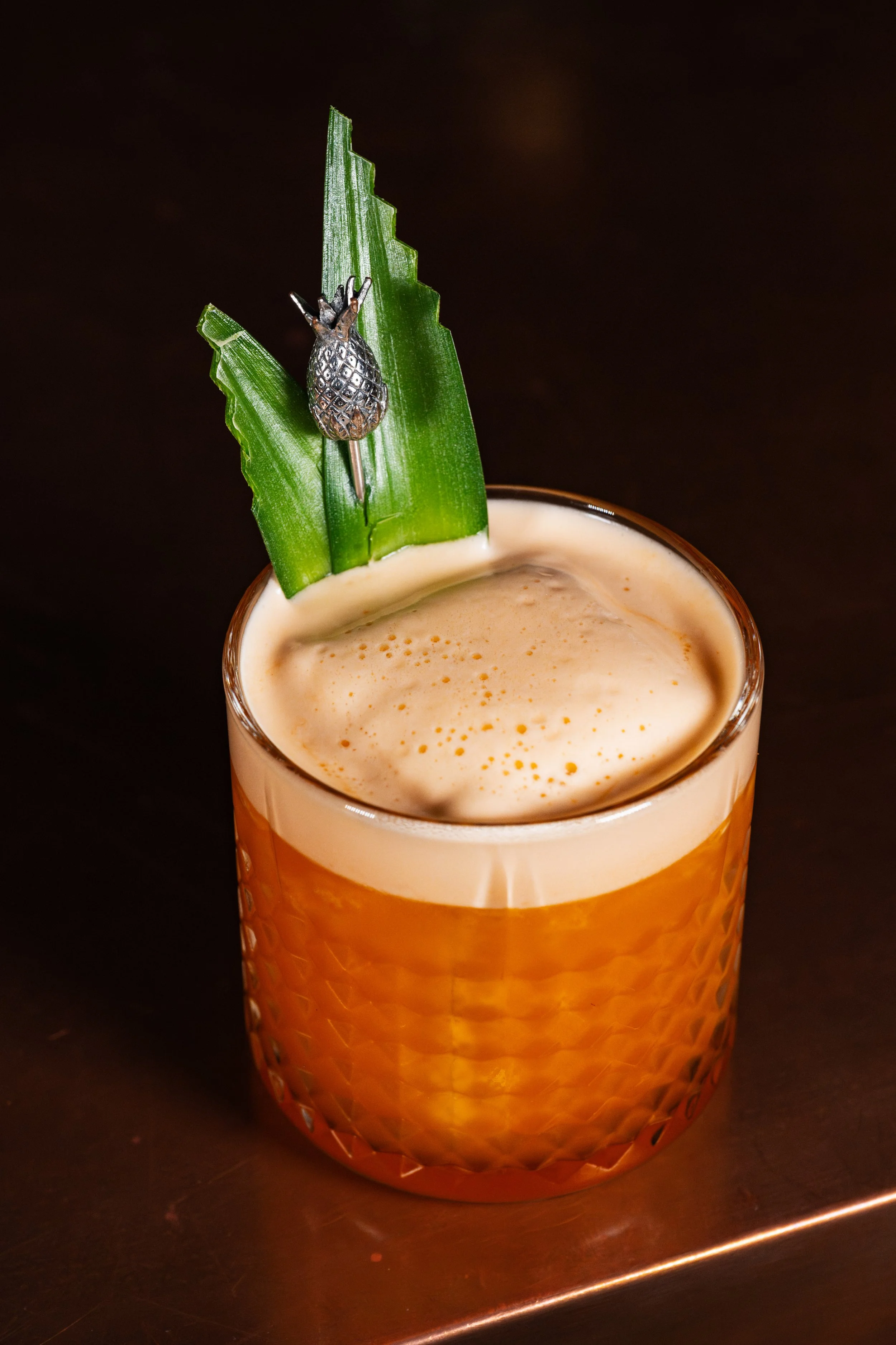 Beyond Lunar Distance: Housemade Non-Alcoholic Campari, Pineapple Juice, Lime Juice, Pineapple Leaf