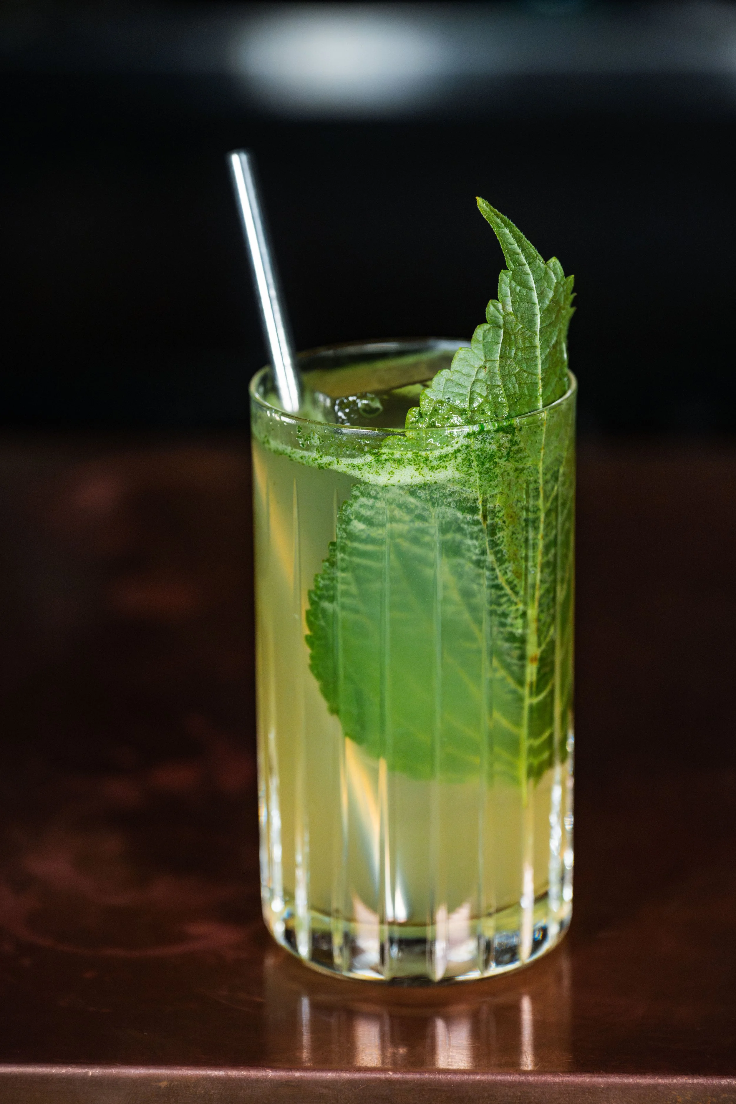 Lake Betty: Shiso-Infused Gin, Cardamom Syrup, Pear Brandy, Pear Cider, Nitro-Muddled Shiso