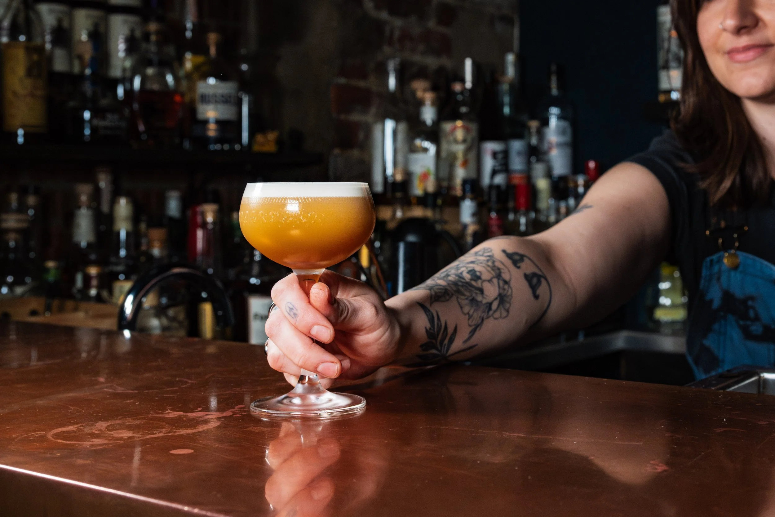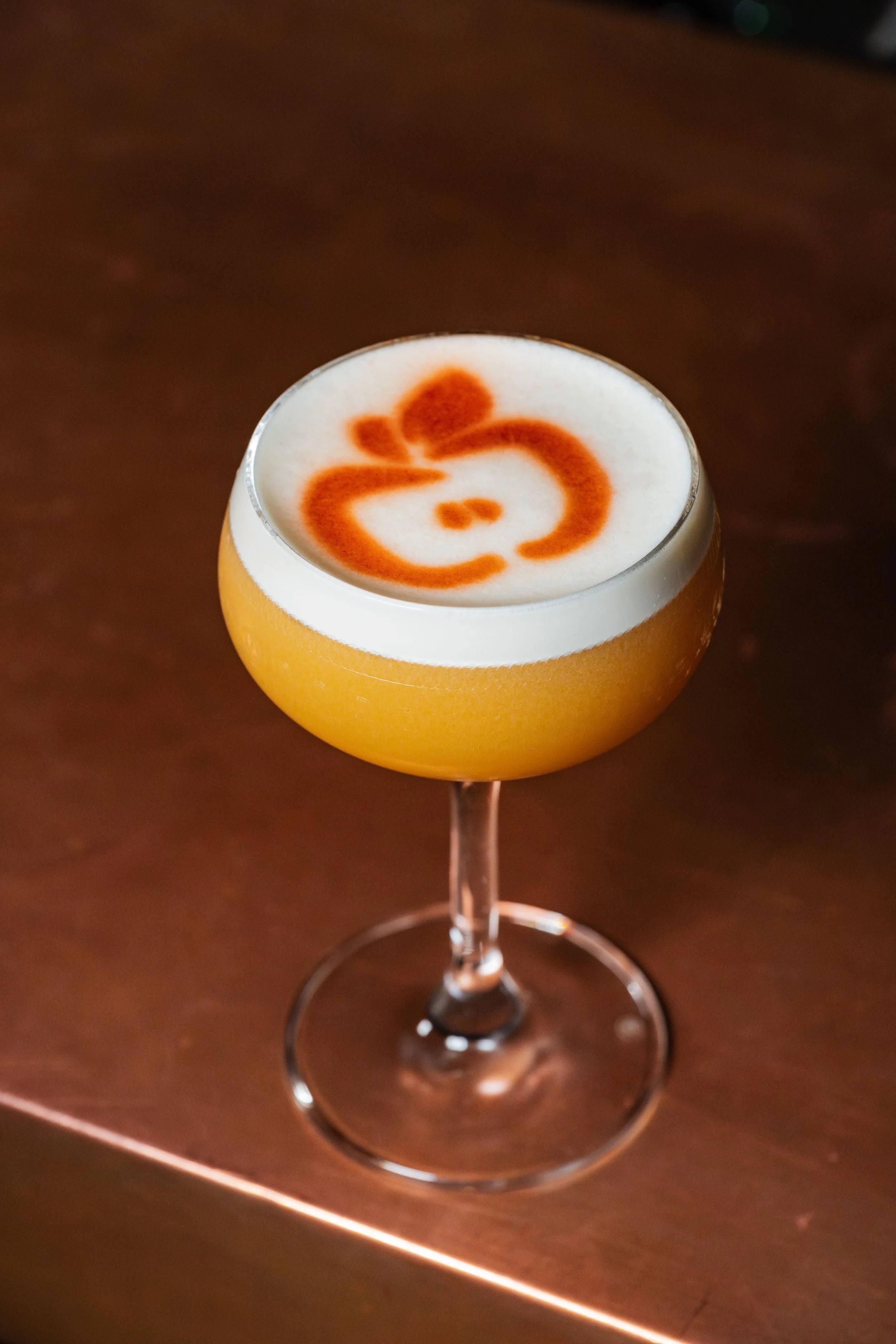 Soft Light: Whiskey, Earl Grey-Infused Armagnac, Apple Aperitif, Sherry, Apple Syrup, Egg White, Earl Grey-Infused Angostura Bitters