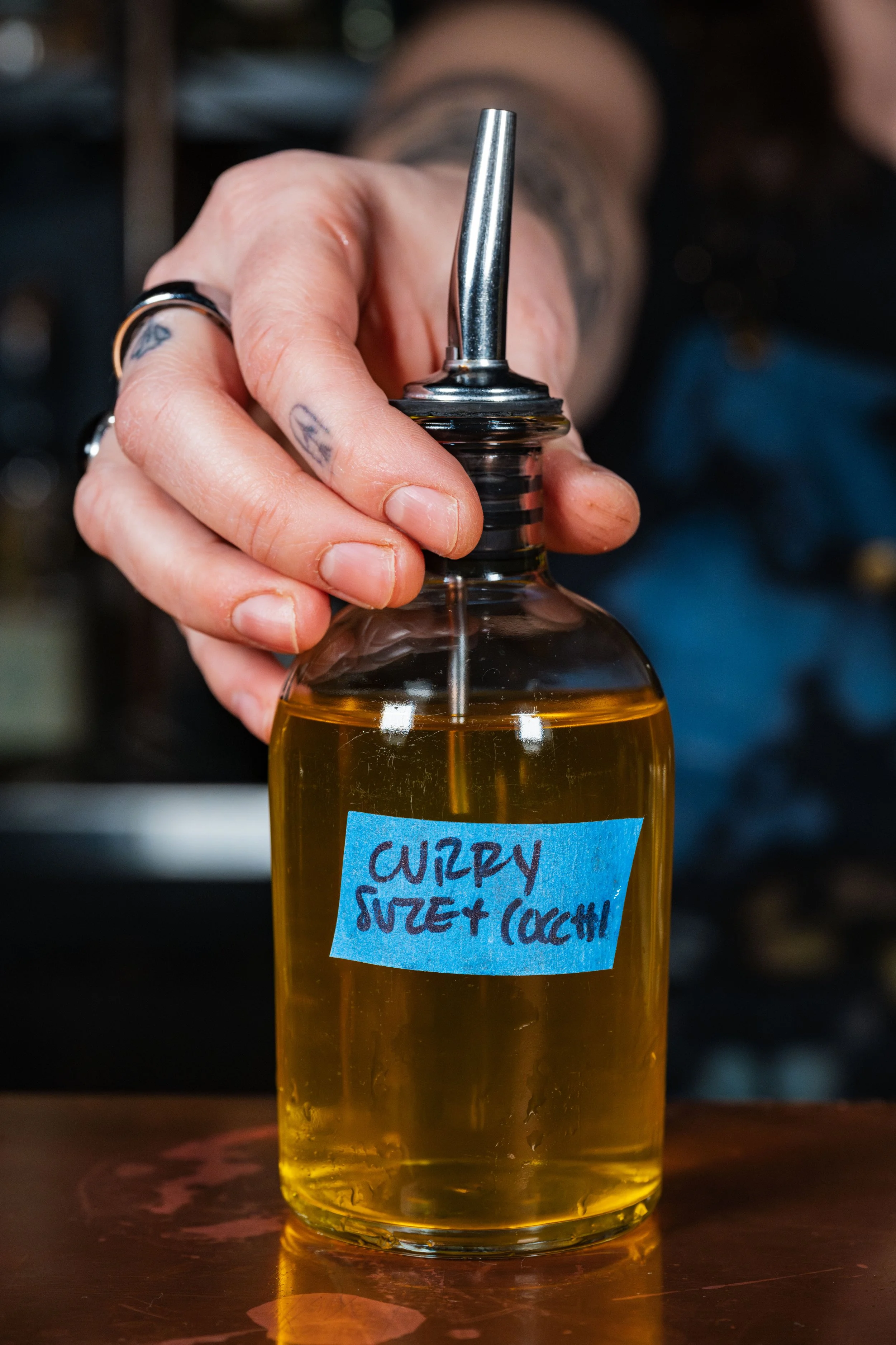 Goldstone: Toasted Cashew-Infused Tequila, Curry-Infused Suze, Cocchi Americano, Vermouth, Curry-Infused Demerara Syrup