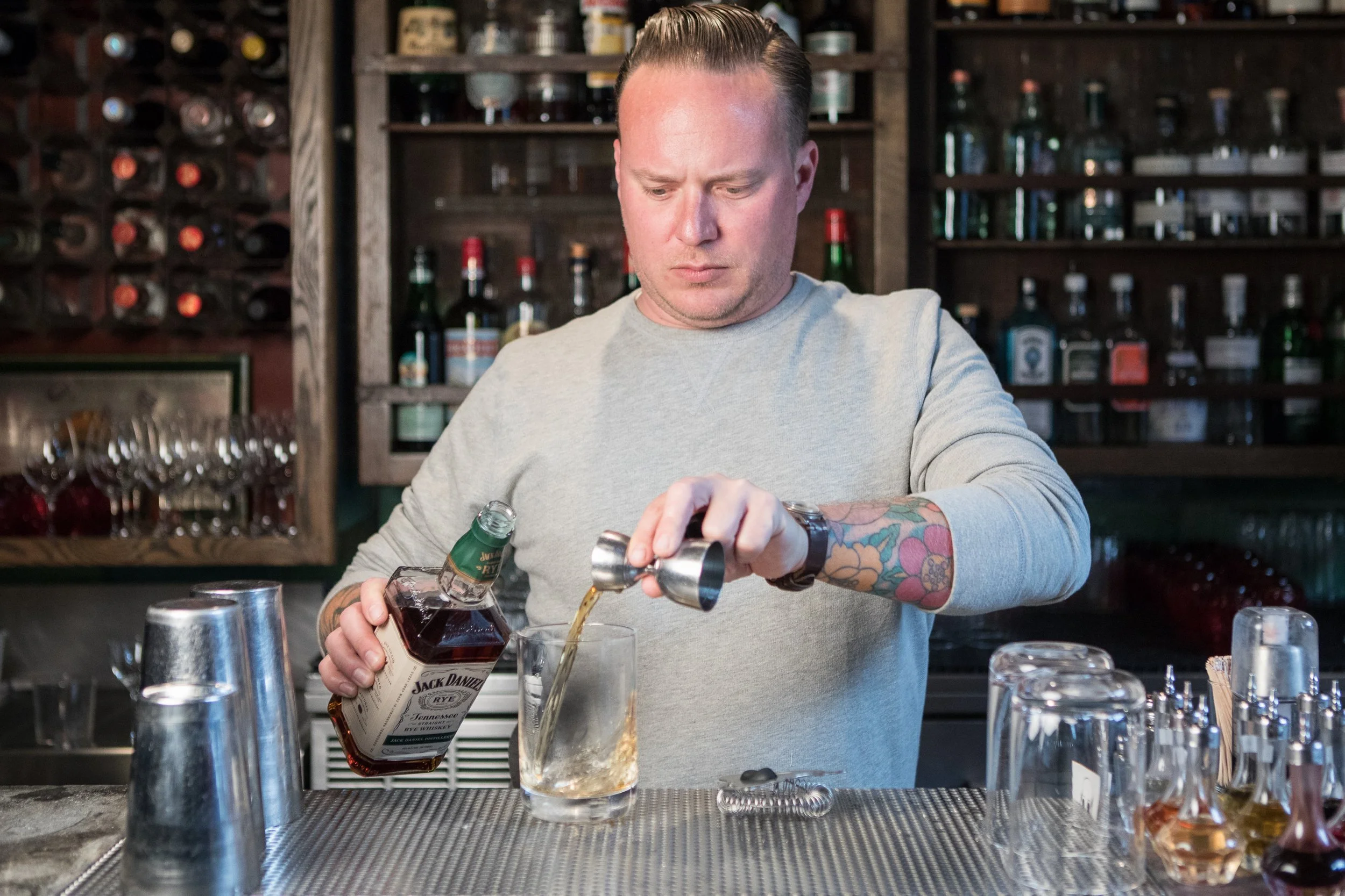 Bananarac: Jack Daniels Rye, Bertoux Brandy, Banana, and Bananisette