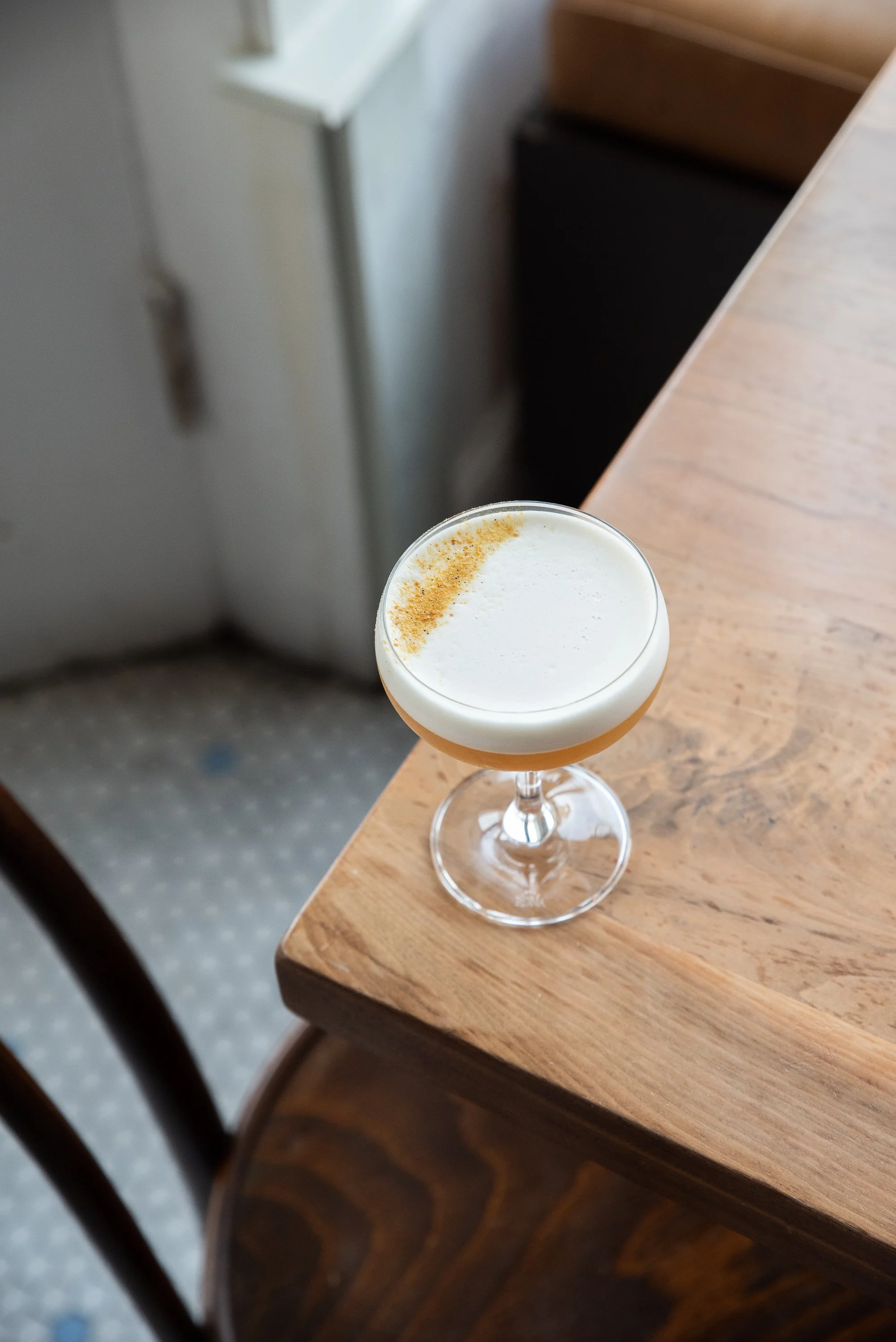 Franciscan Wallflower: Moscato Apertif, Cardamom, Mandarin Liquer, Haitian Rum, Citrus, and Egg White