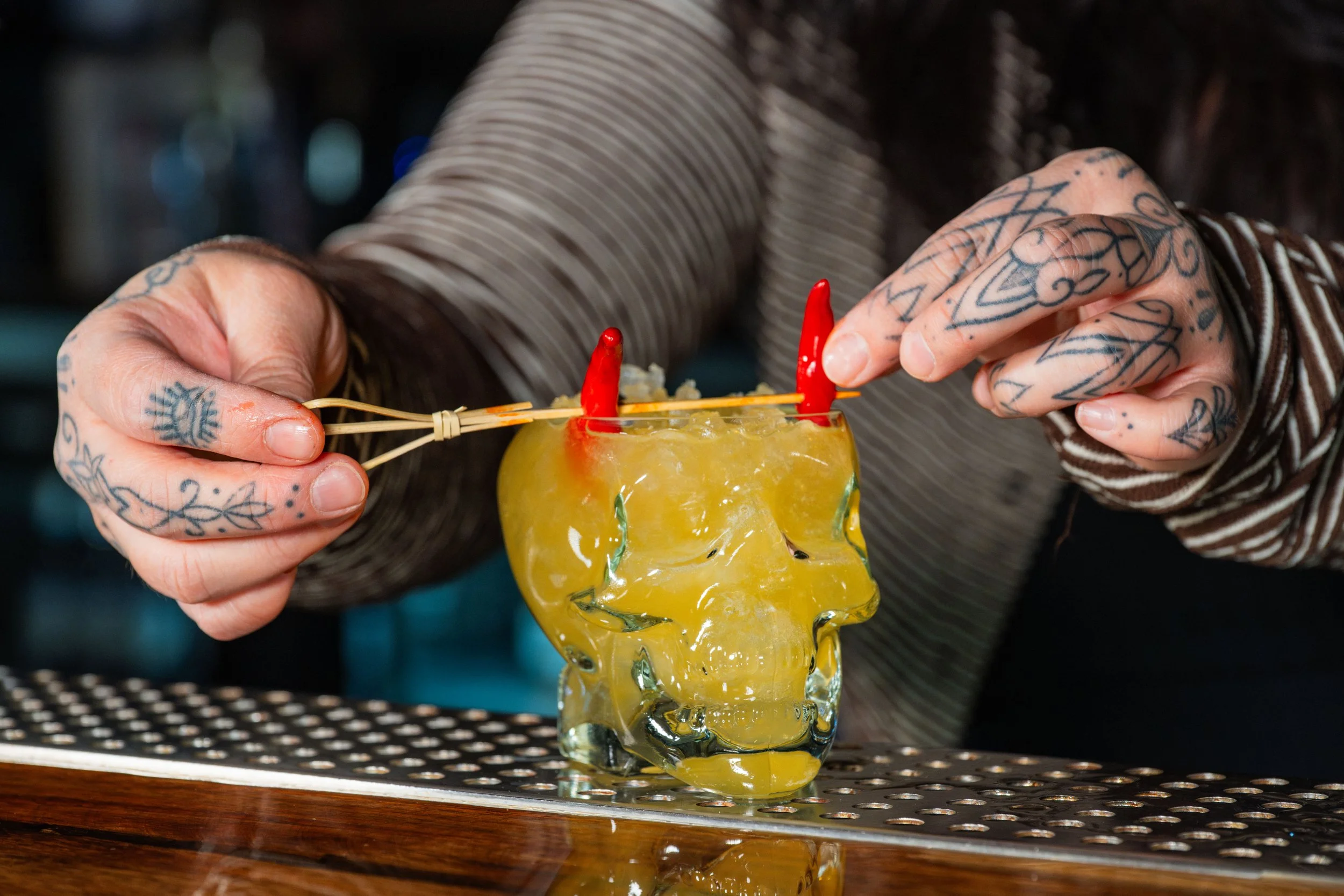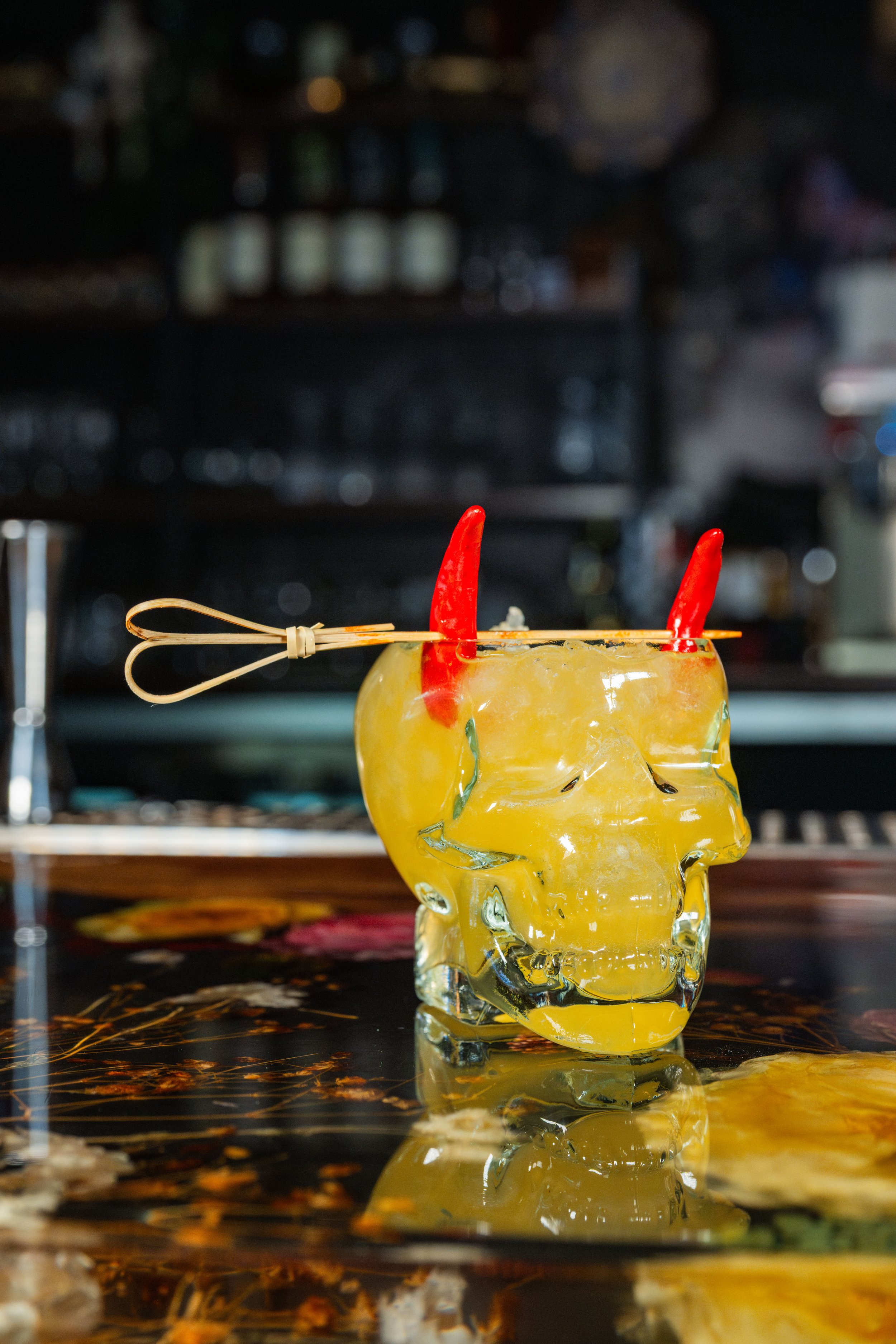 Devil’s Dance: Thai Chile-Infused Rum, Passionfruit Liqueur, Ginger Beer, Vanilla Syrup, Lime Juice, Thai Chiles