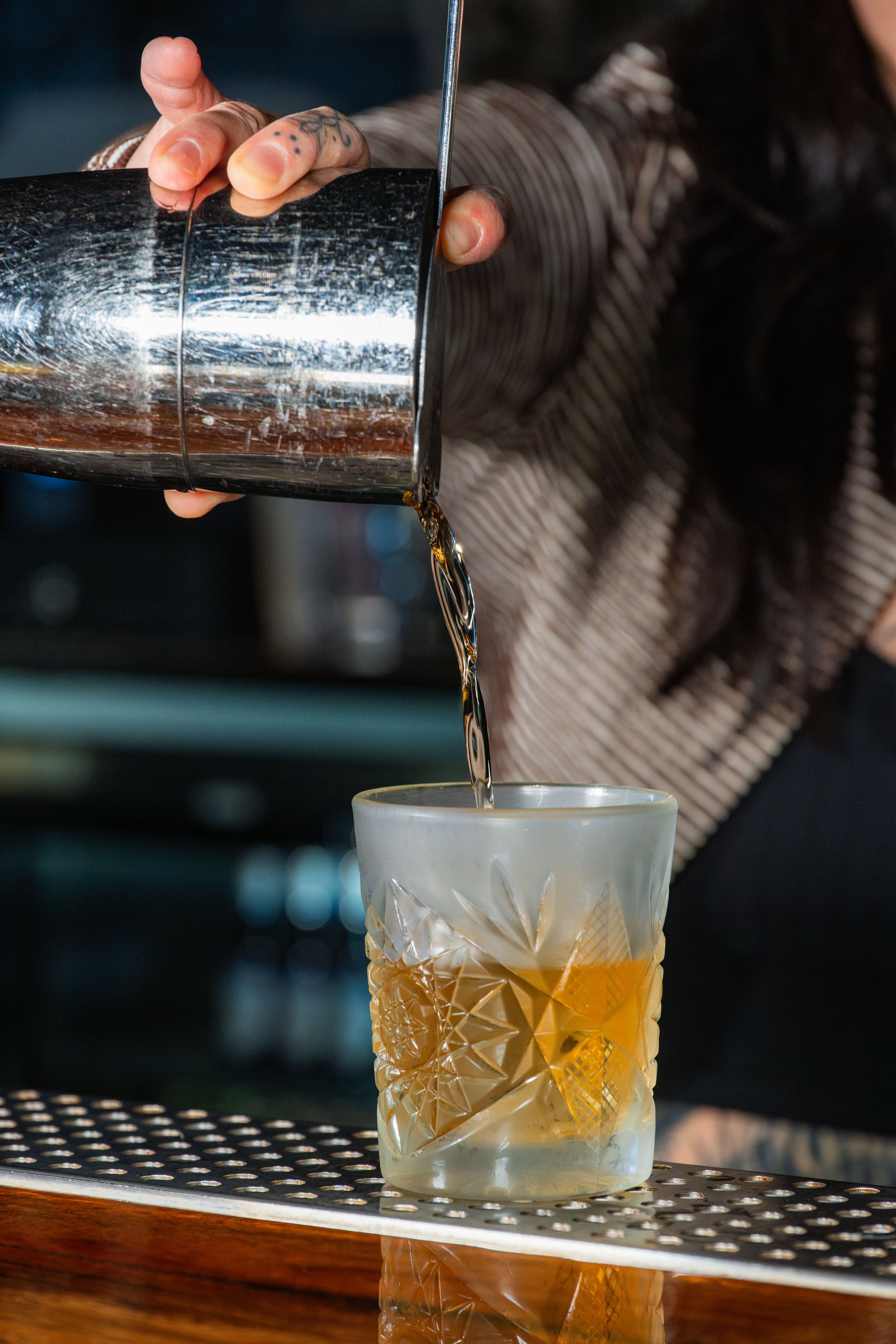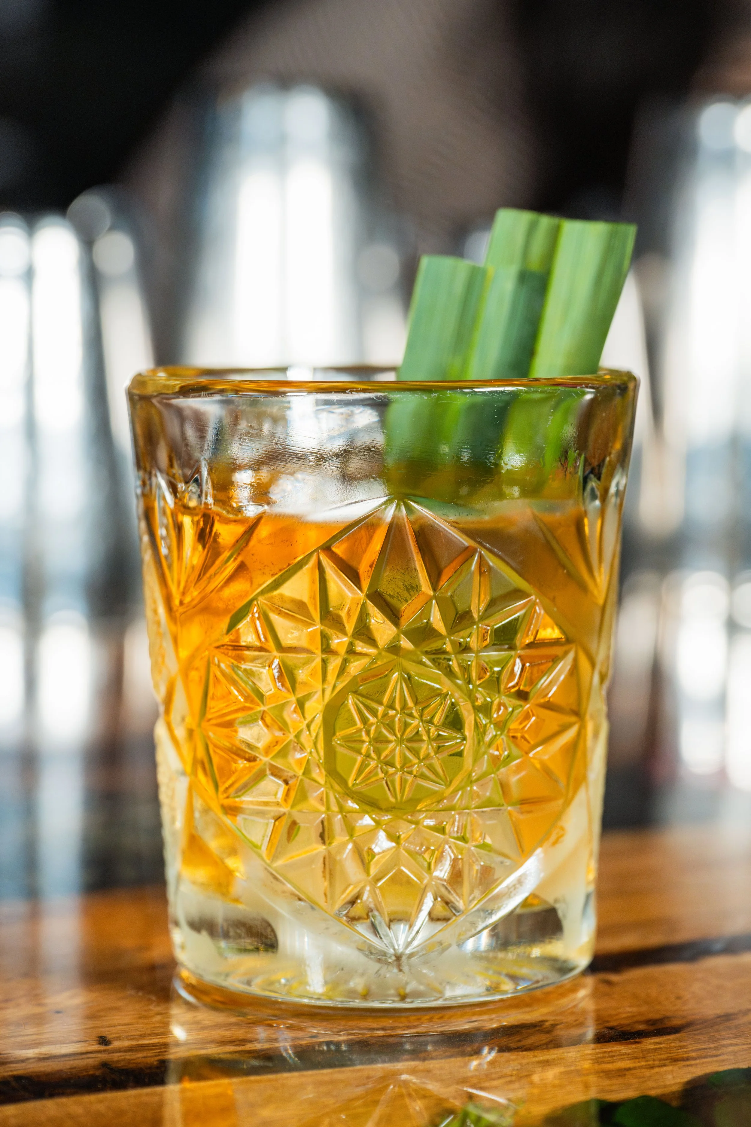 The Silk Road: Japanese Whiskey, Coconut- and Pandan-Infused Rum, Macadamia Nut Syrup, Angostura Bitters, Pandan