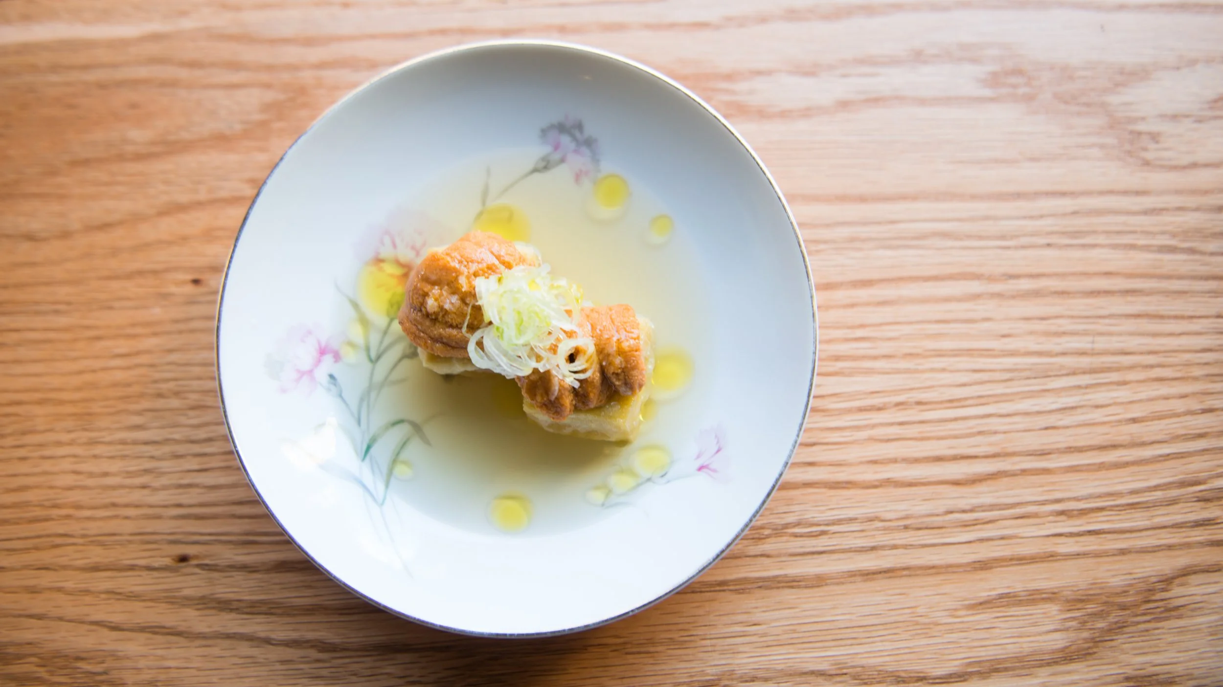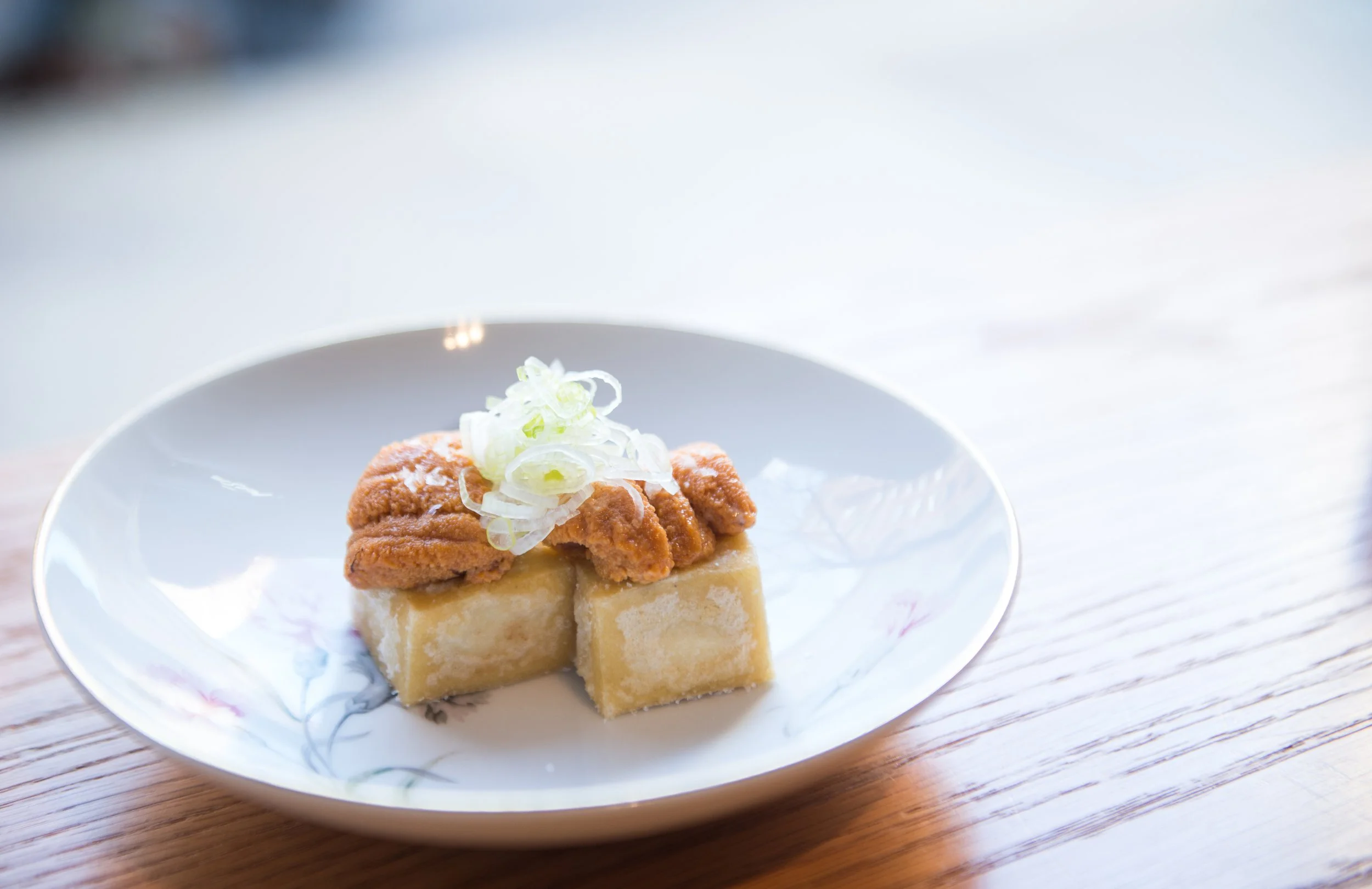 Panelle, Maine Uni, Green Onion, Spanish Olive Oil, and Dashi