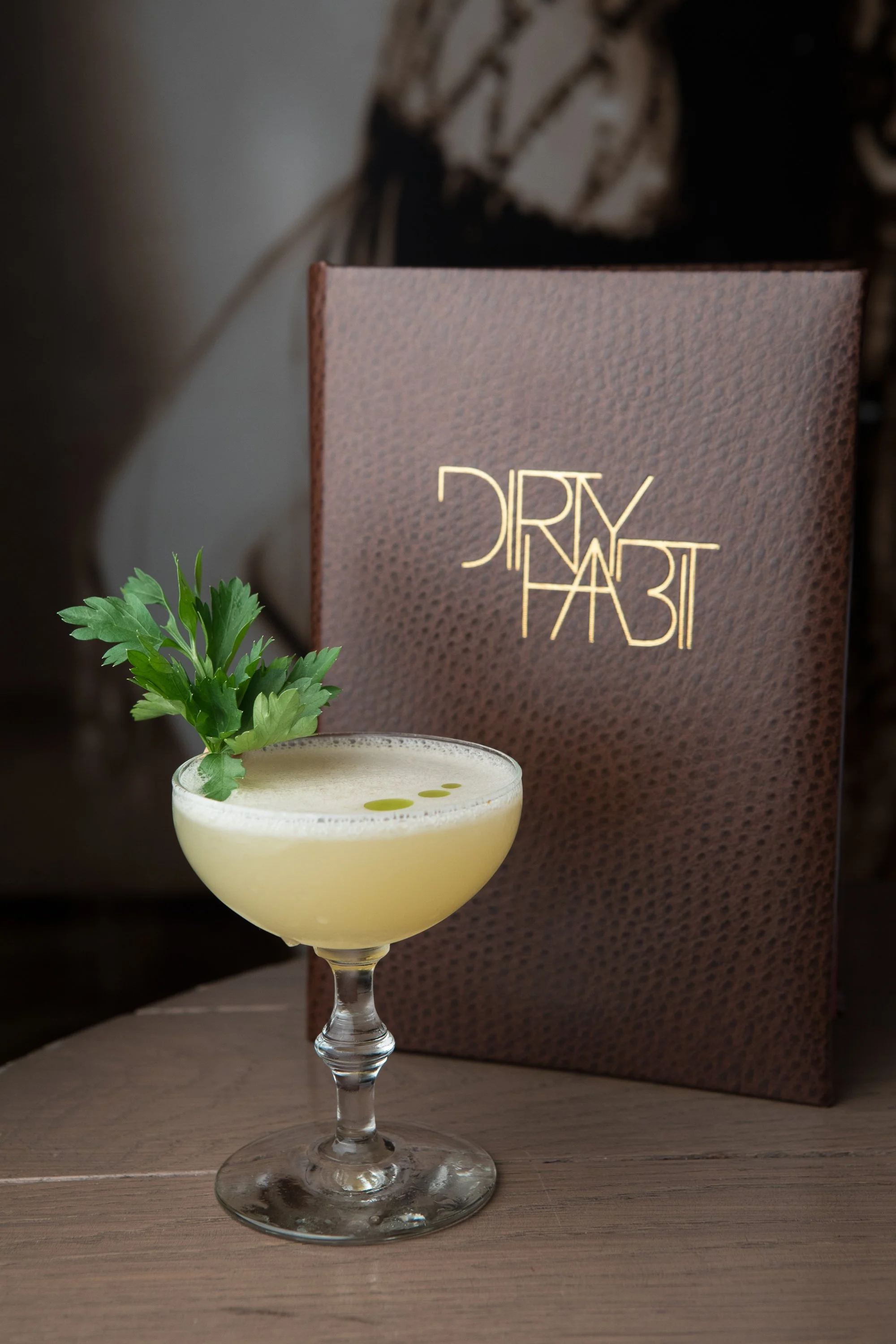 Mezcal Cleanse: Del Maguey Vida Mezcal, Celery Root Syrup, Pear Eau De Vie, Parsley Oil, and Lemon Juice