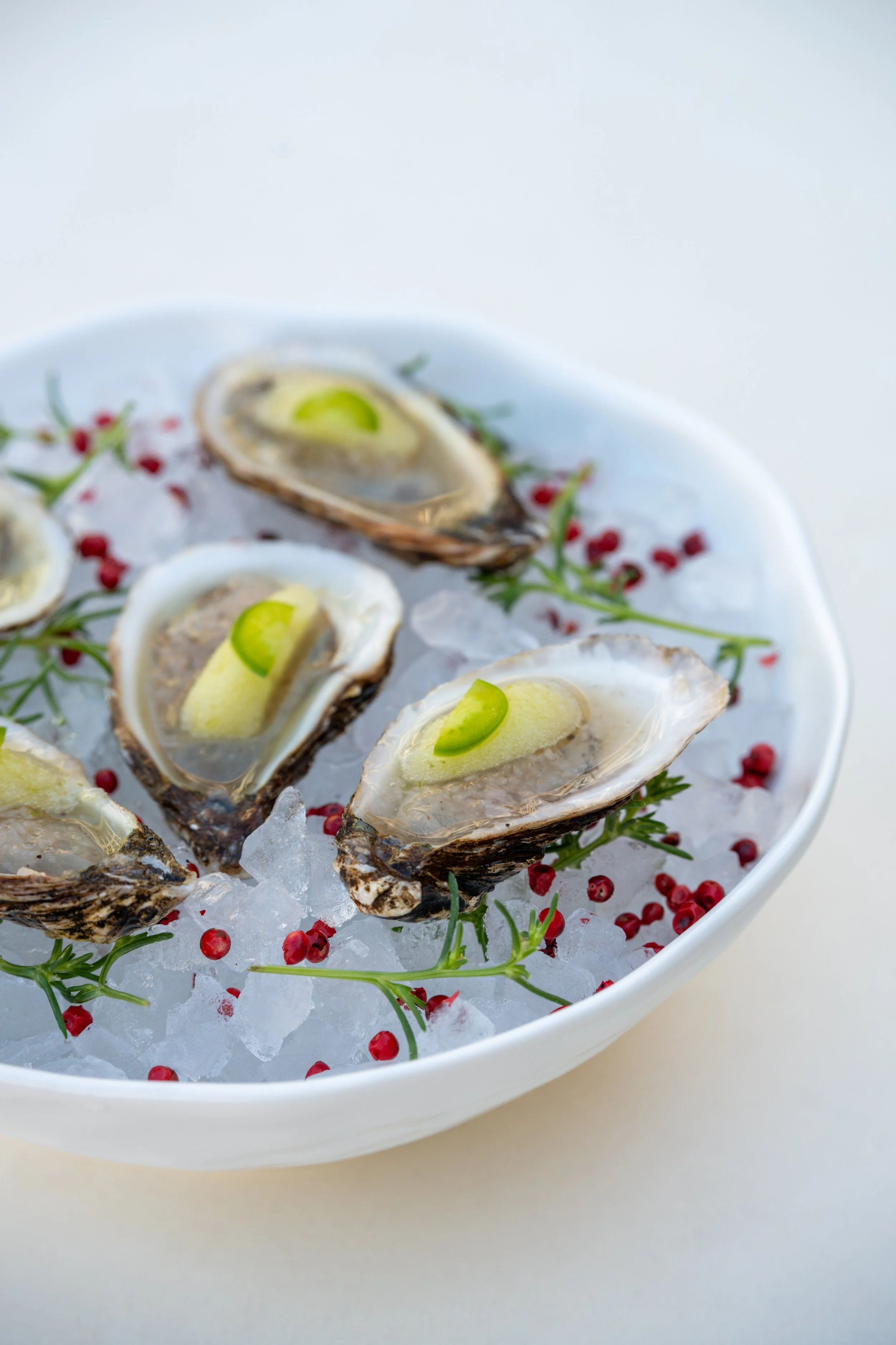 Highroller Oysters, Gin Mignonette, Lime-Jalapeño Sorbet, Jalapeño