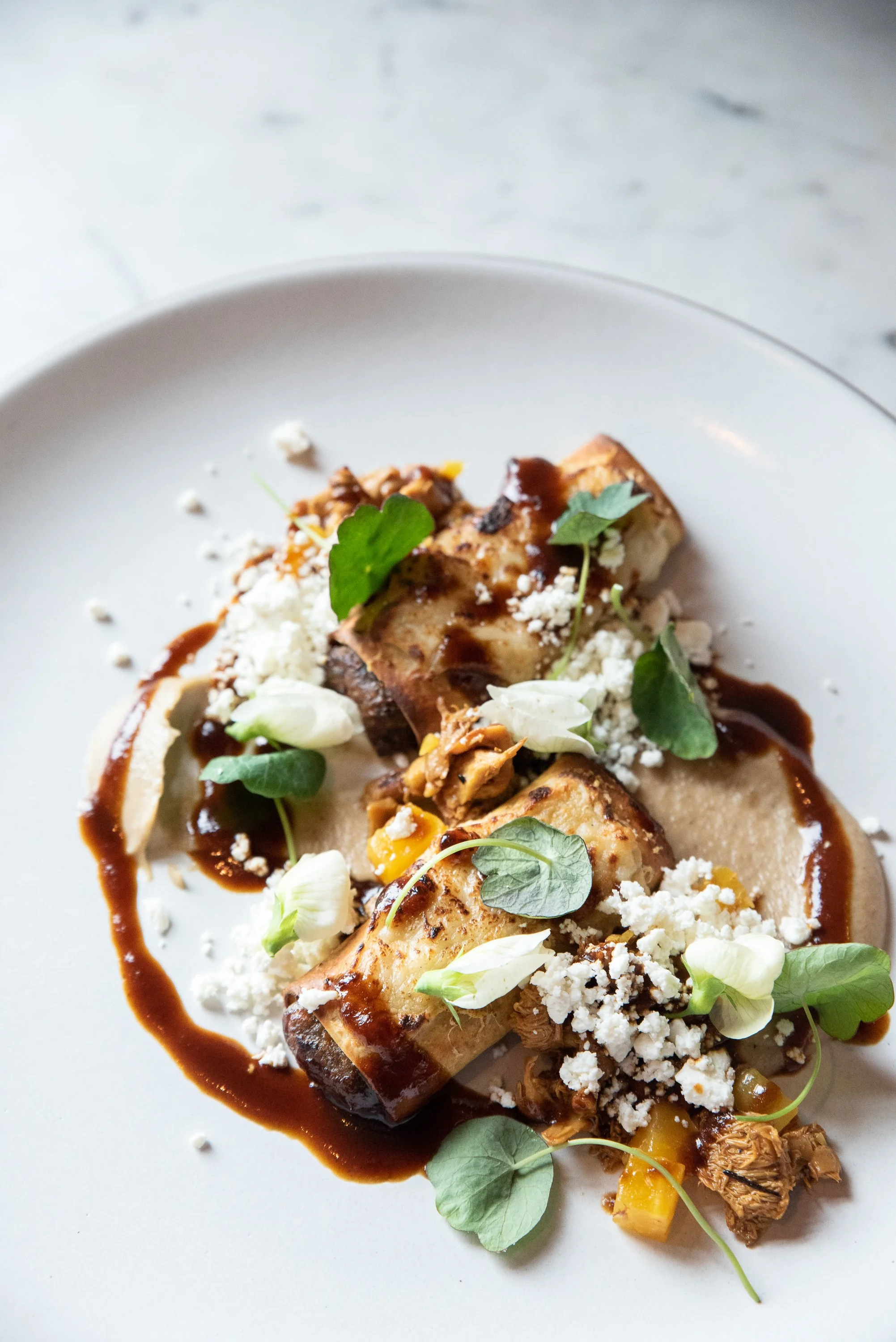 Veal Cannelloni, Ricotta, Sunchoke Purée, and Golden Raisins