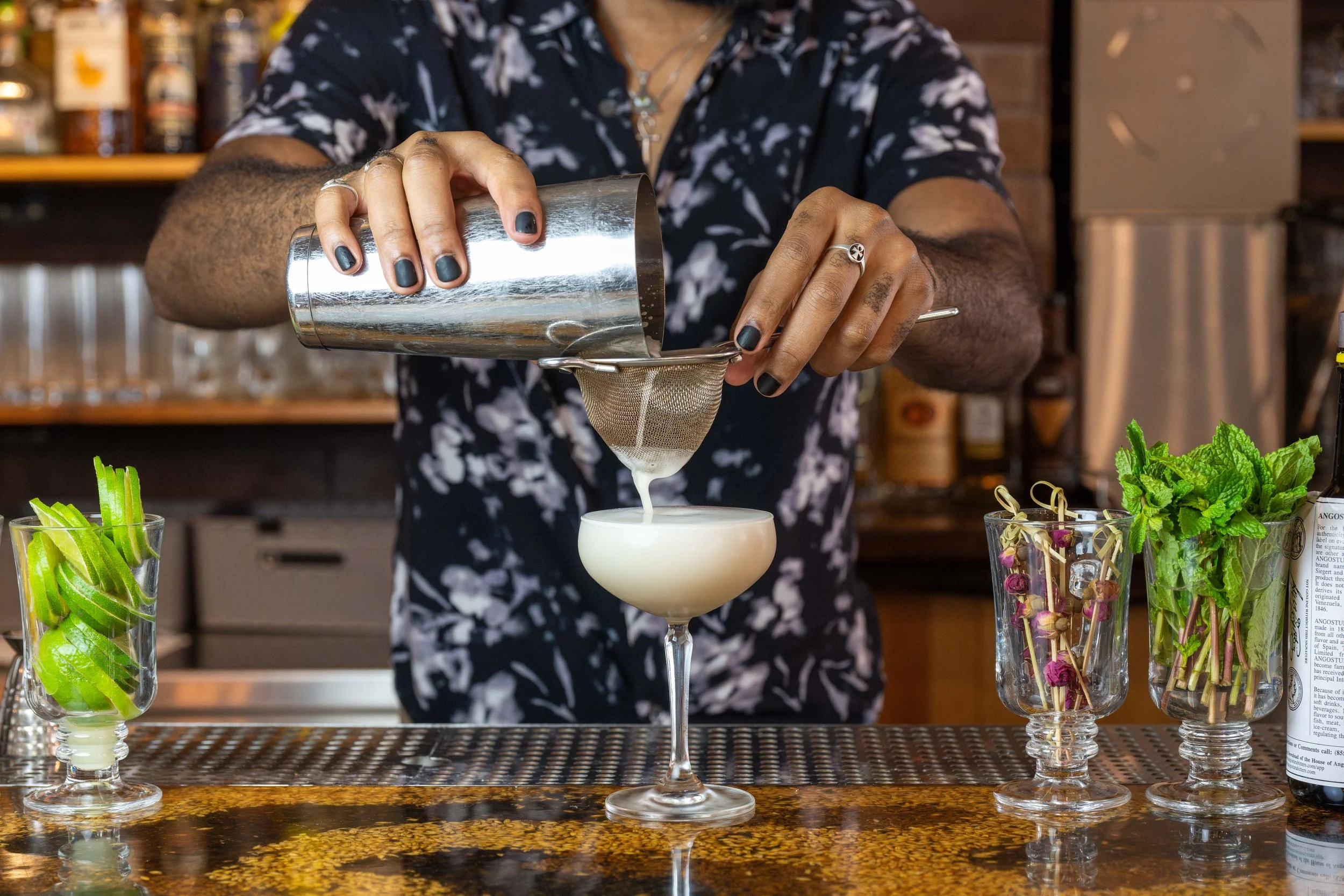 Oops, All Berries: Brown Butter-Washed Rum, Licor 43, Simple Syrup, Aquafaba, Blueberries, Blackberries, Strawberries, Whipped Cream, Nutmeg