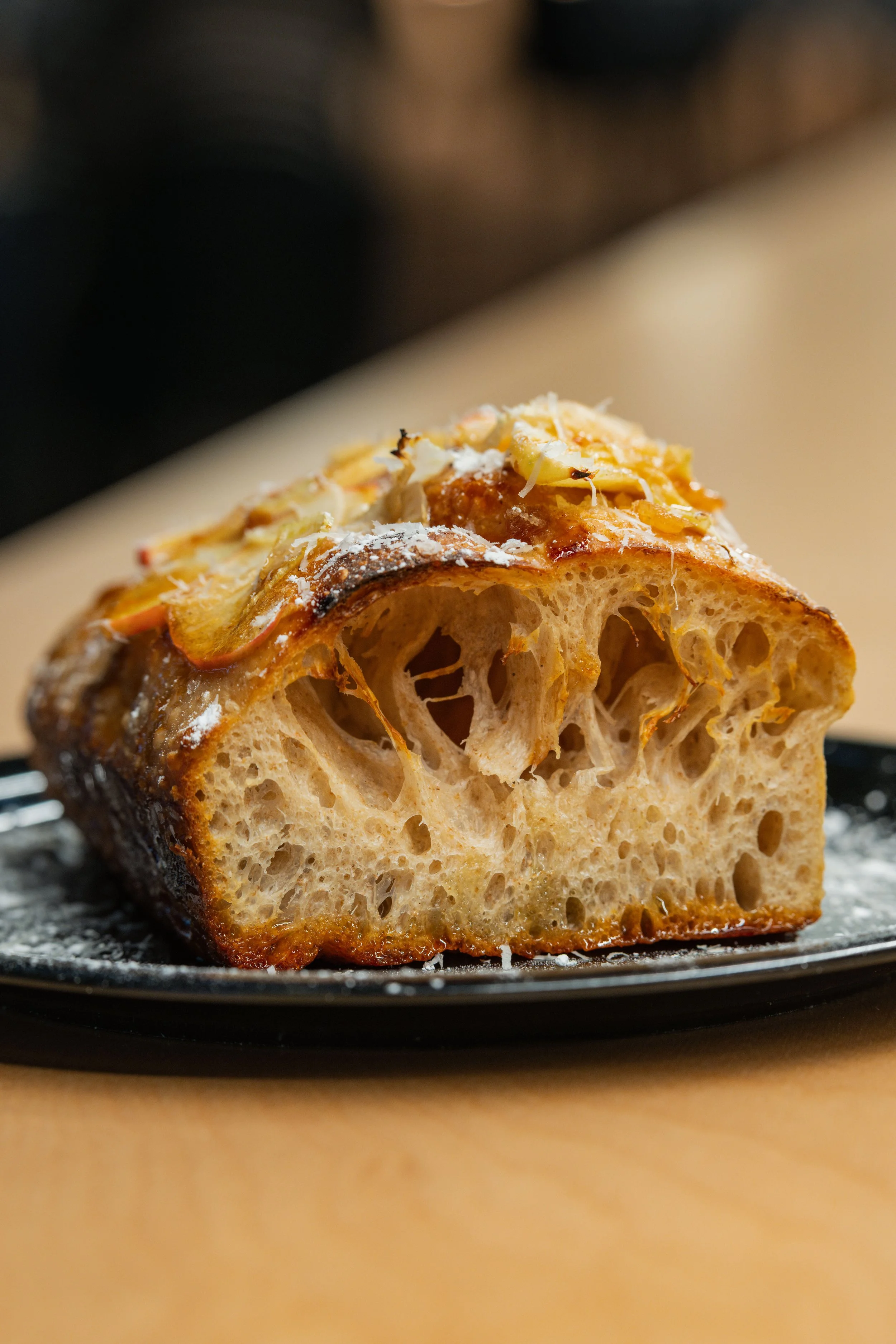 Focaccia, Roasted Fennel, Roasted Apples, Apple Molasses, Powdered Sugar, Parmesan
