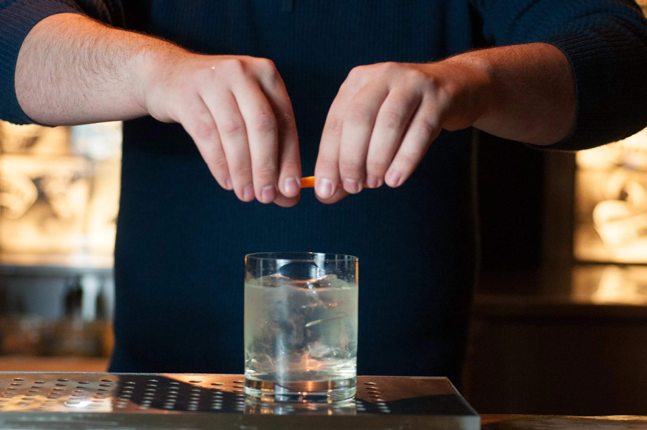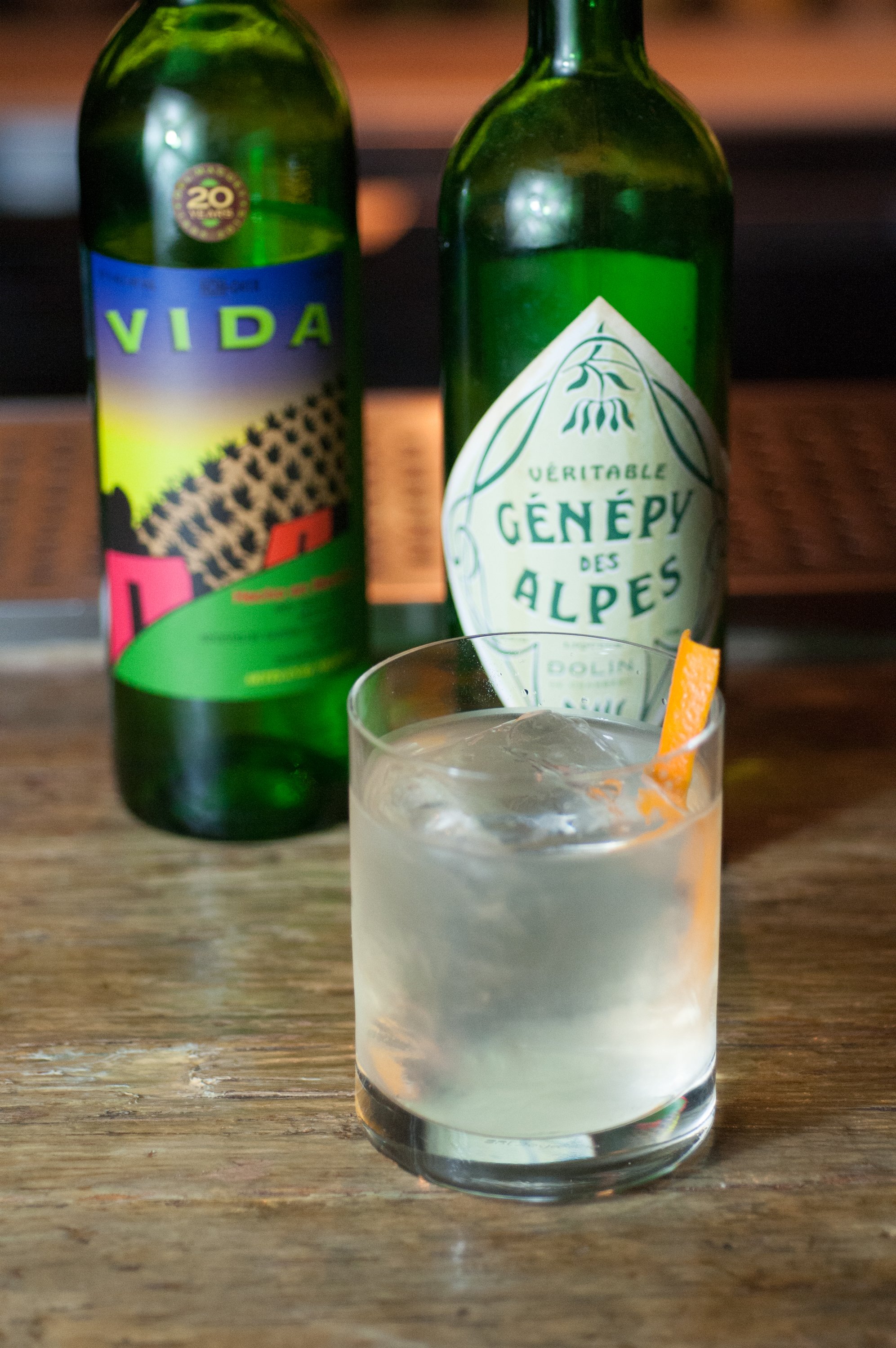 The Peacemaker: Dolin Genepy, Vida del Maguey Mezcal, Toasted Poppy Seed Tincture, and Orange Oil